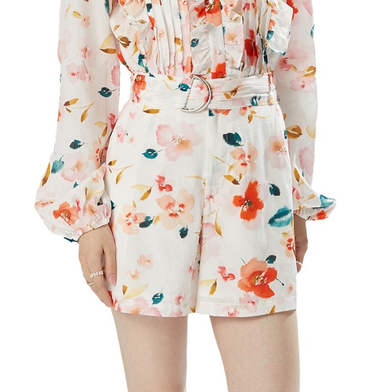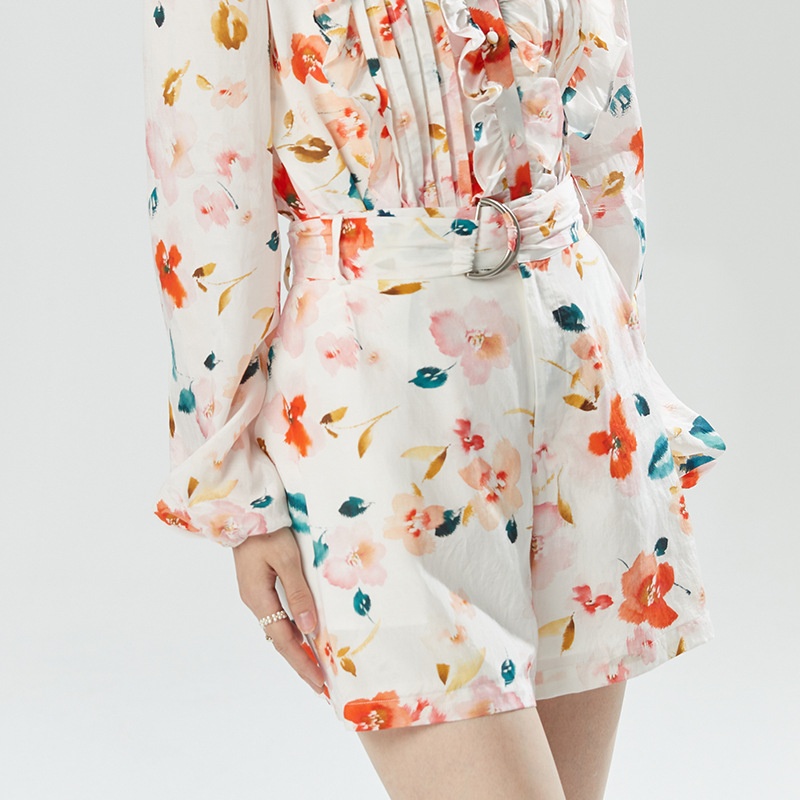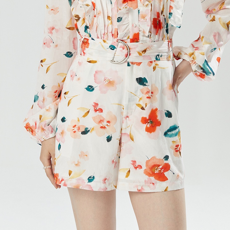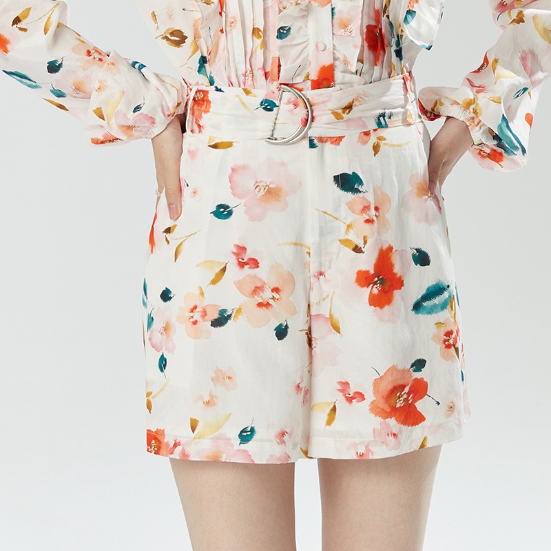 Summer Women's Printed Shorts With Belt For Slimming A-line,Small And Tall Viscose All-match High Waist Hot Pants