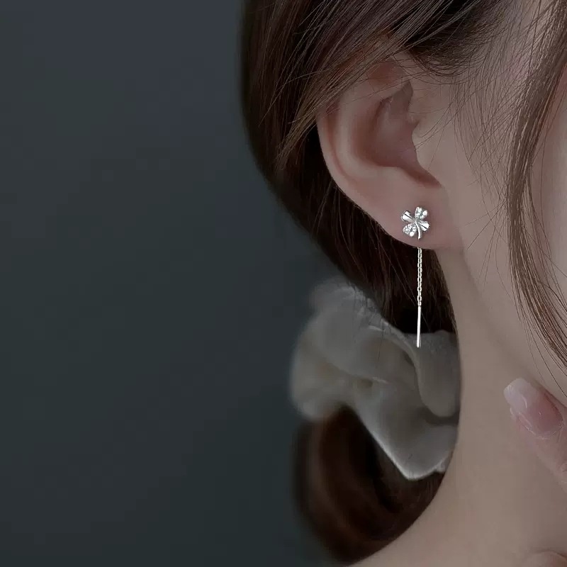 S925 Silver Four-leaf Clover Earrings Niche Versatile Design Phoenix Small Fresh Tassel Earrings Silver Jewelry