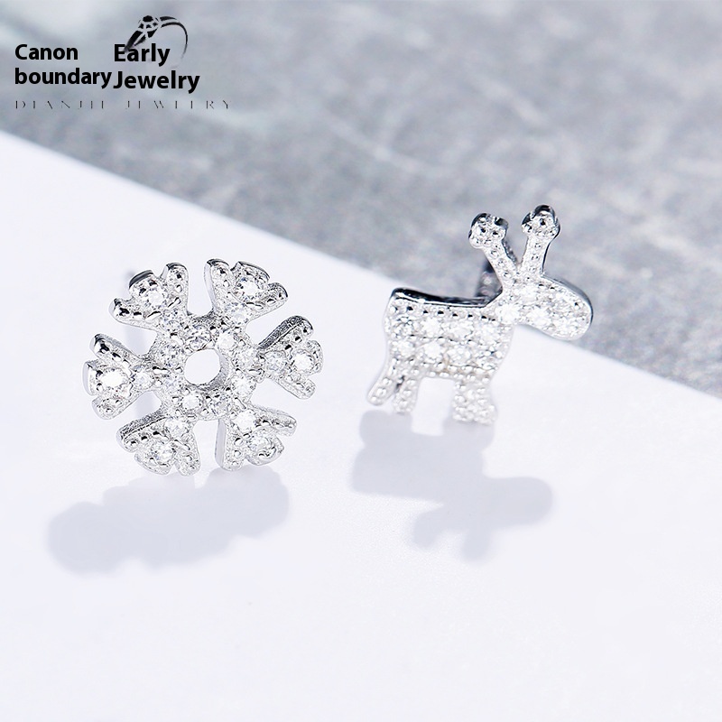 925 Sterling Silver Earrings Cute Snowflake Deer Earrings Micro-inlaid Korean Style Small Fresh Jewelry Ear Accessories