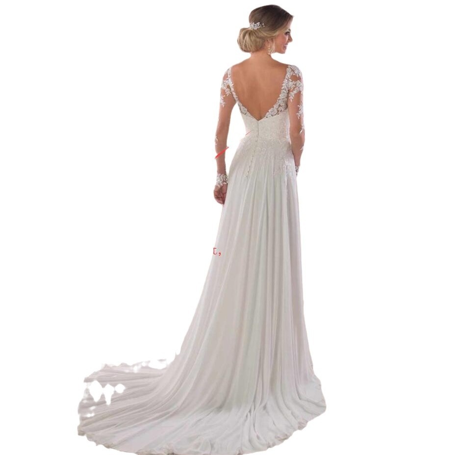 European And American Trailing Wedding Dress Deep V-neck Chiffon Dress Backless Sexy Wedding Dress Summer