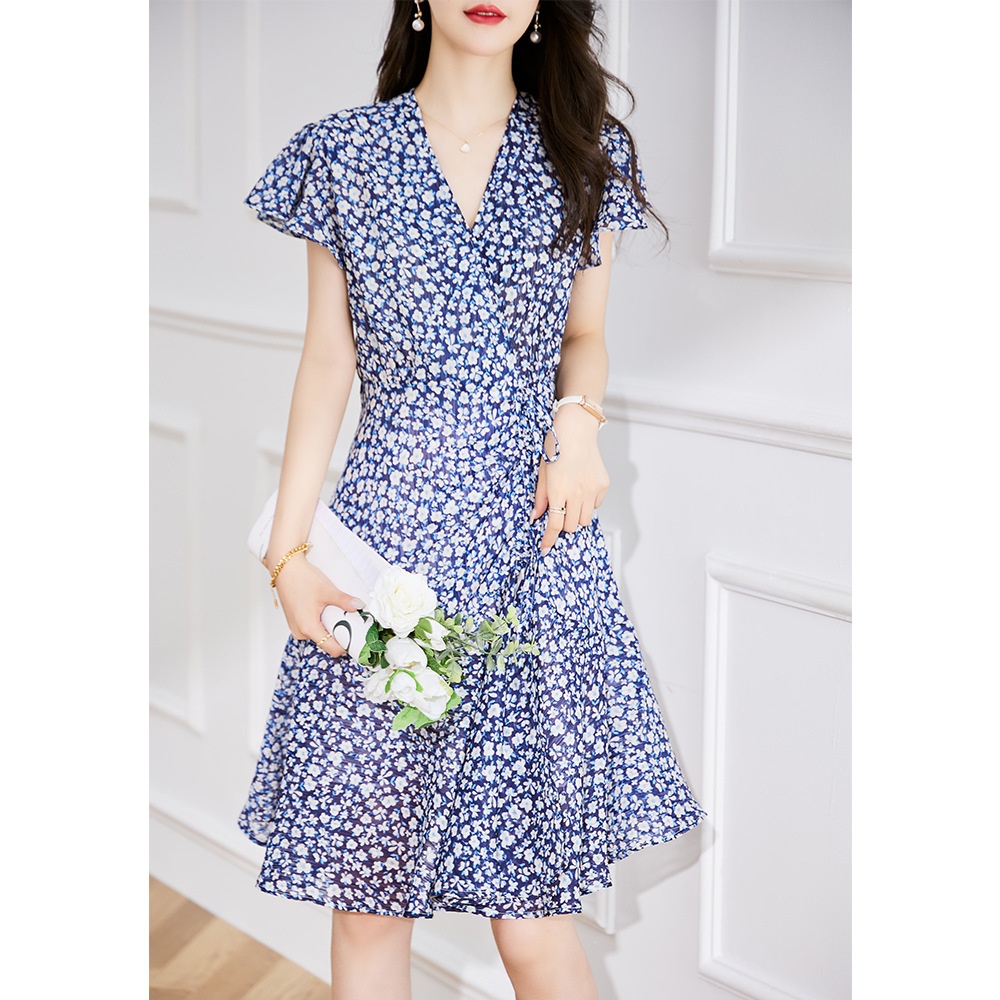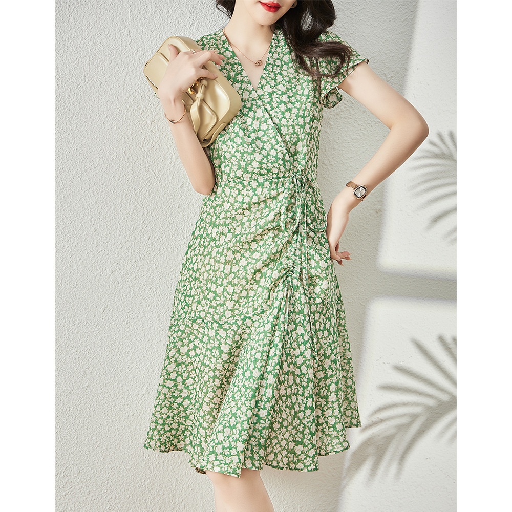 Shenghong23 Summer Clearance French Style Fresh Floral Holiday Style Slim Fishtail Petite Dress16017