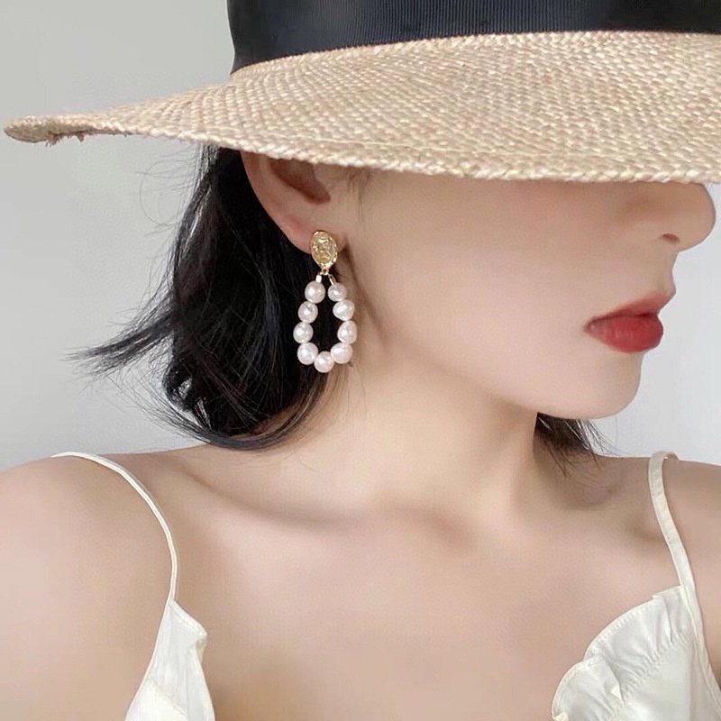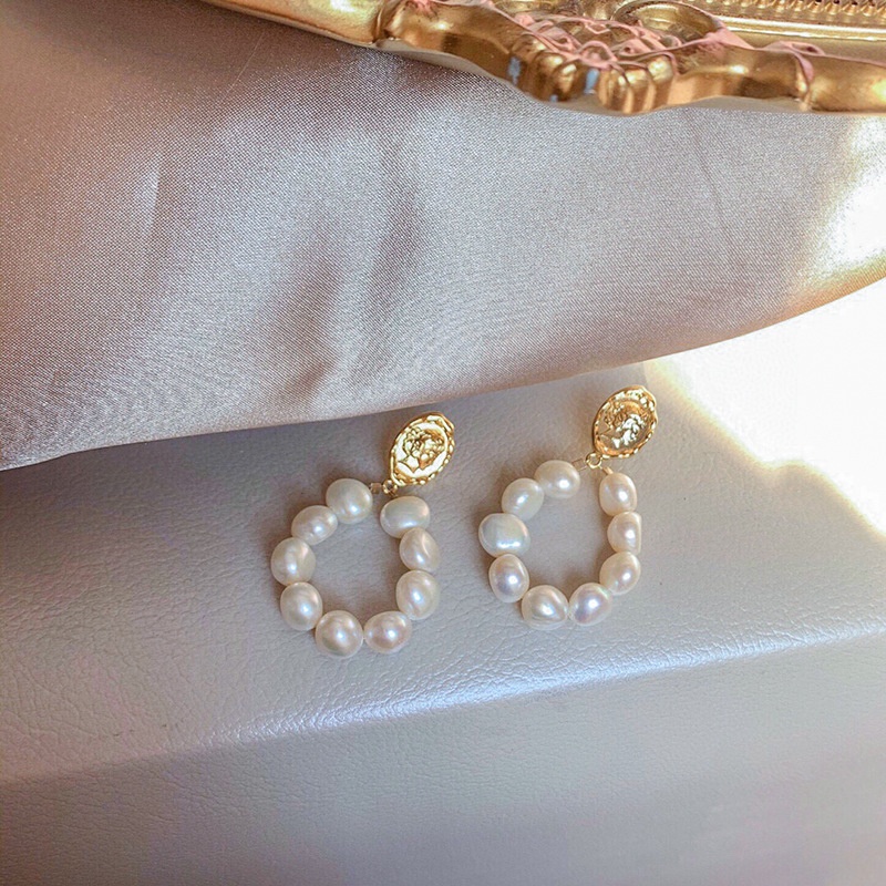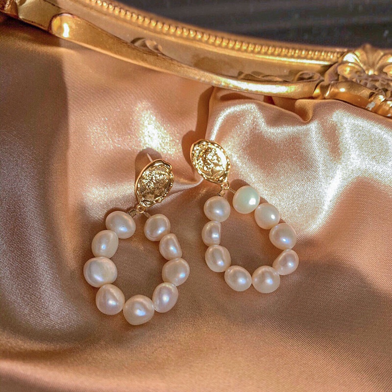Retro Avatar Gold Coin Earrings925 Silver Needle French Light Luxury14k Gold-filled Freshwater Baroque Pearl Earrings