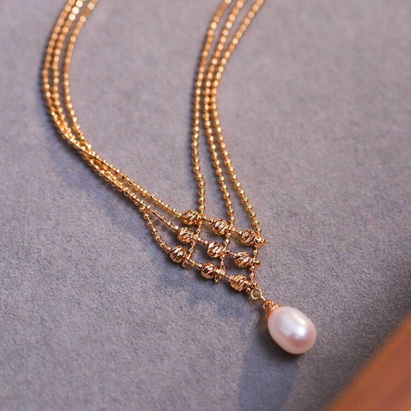 Retro Palace Style Natural Freshwater Pearl Necklace Female Niche High-end14k Gold-filled Multi-layer Lace Clavicle Chain