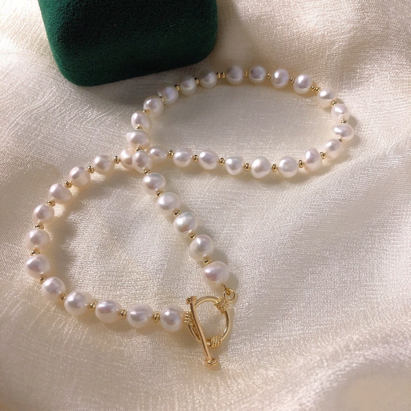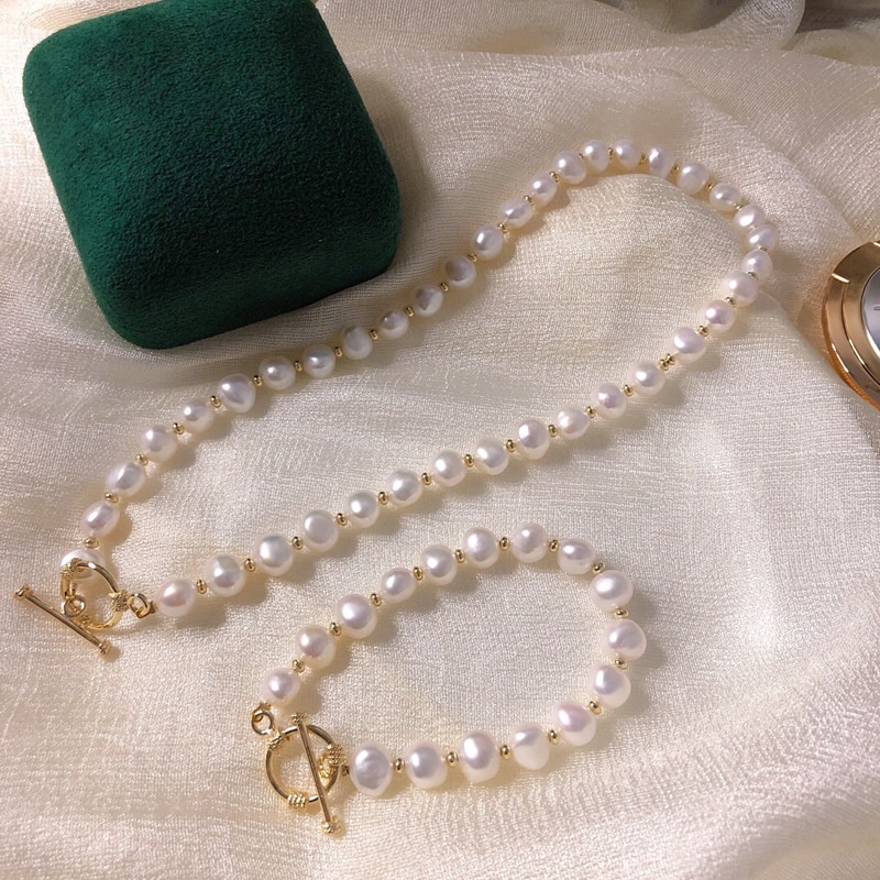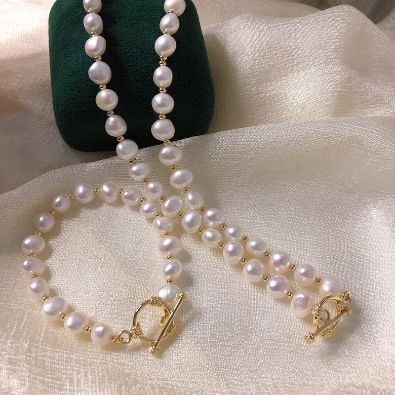 European And American Retro Creative Natural Baroque Pearl Bracelet Necklace Set Net Red14 KGold OTBuckle Set Female