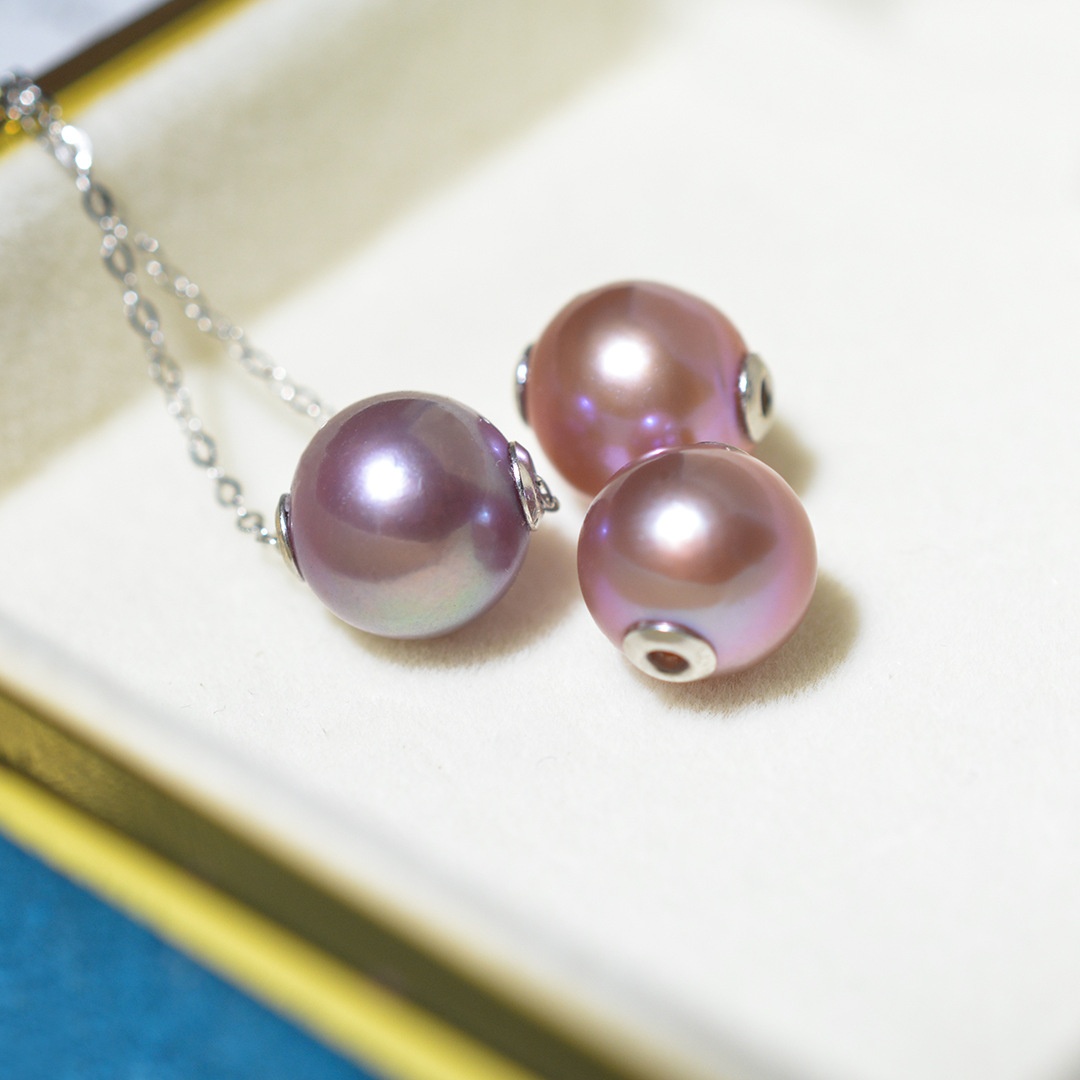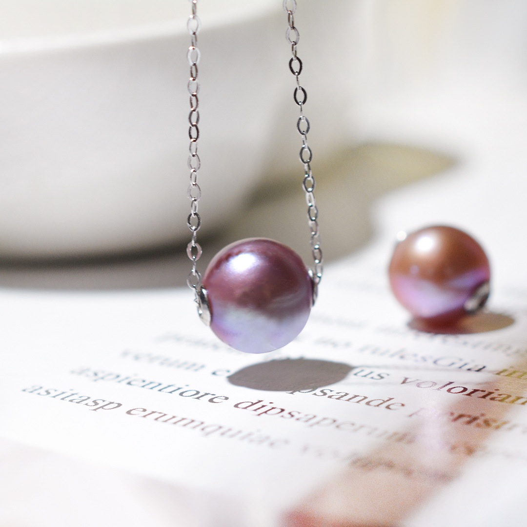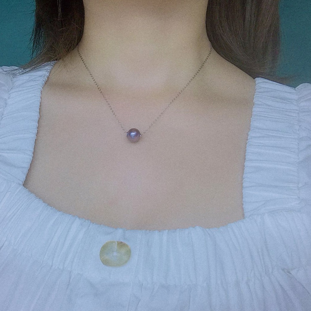 Purple Edison Pearl Passepartout Necklace S925 Silver Strong Light Simple Cold Style Natural Pearl Pendant Commuter