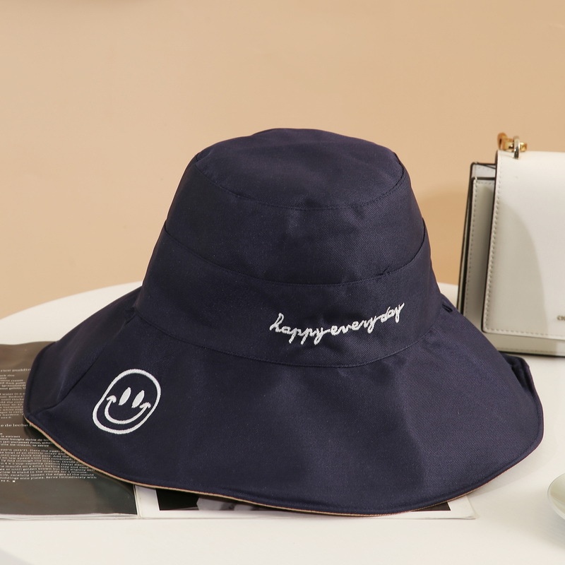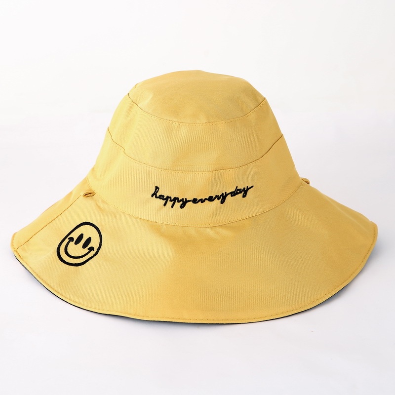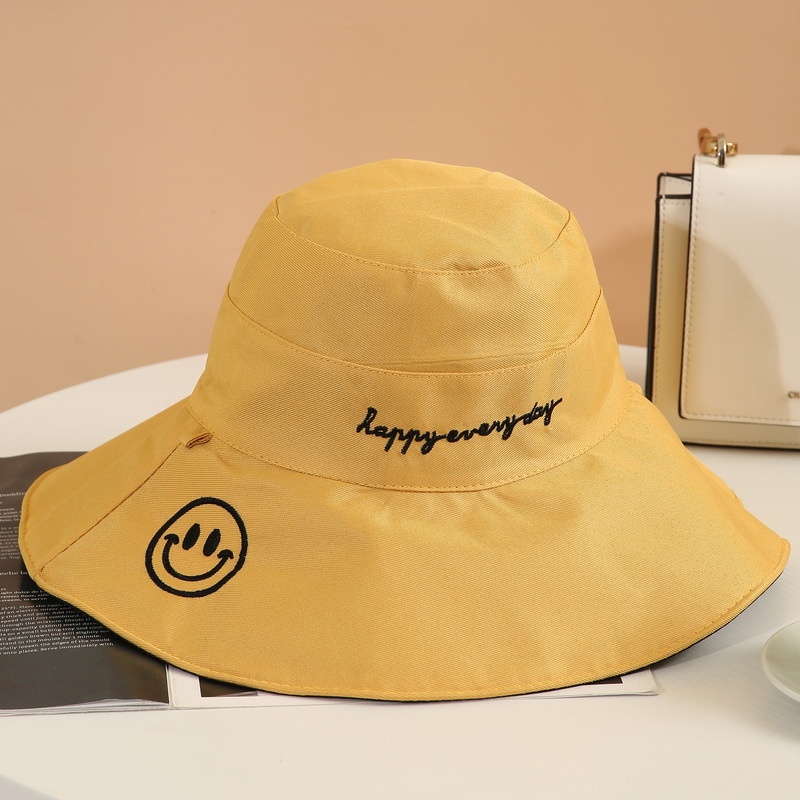 Summer Fisherman Hat For Women With Large Brim, Smiley Face,y Double-sided Sun Hat, Sun Protection Visor, Foldable