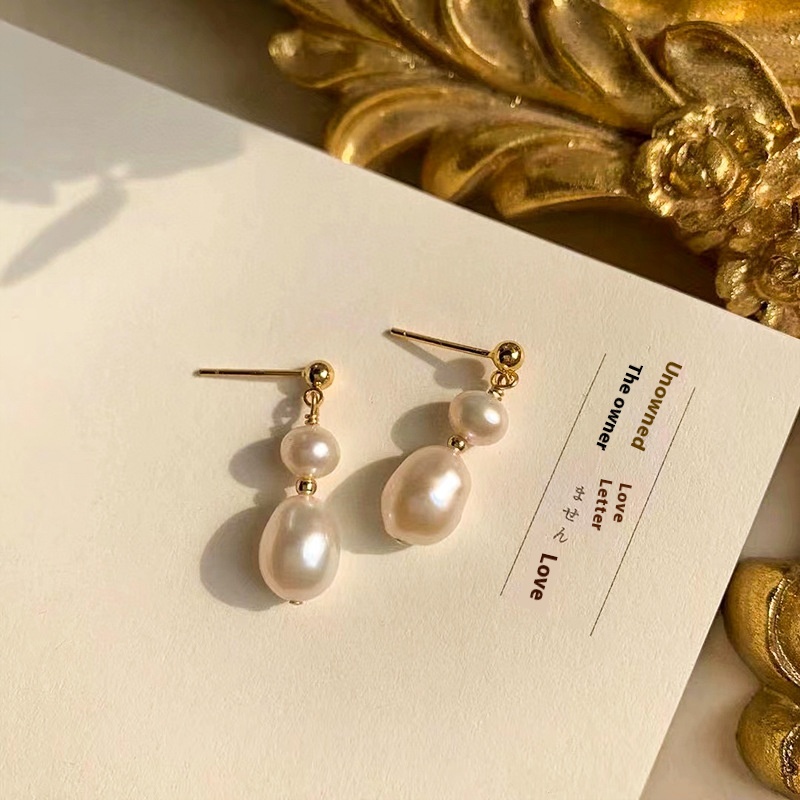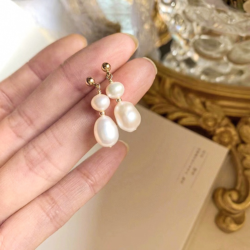 Natural Freshwater Pearl Earrings S925 Silver Needle Retro Simple High-end Baroque Pearl Earrings For Women