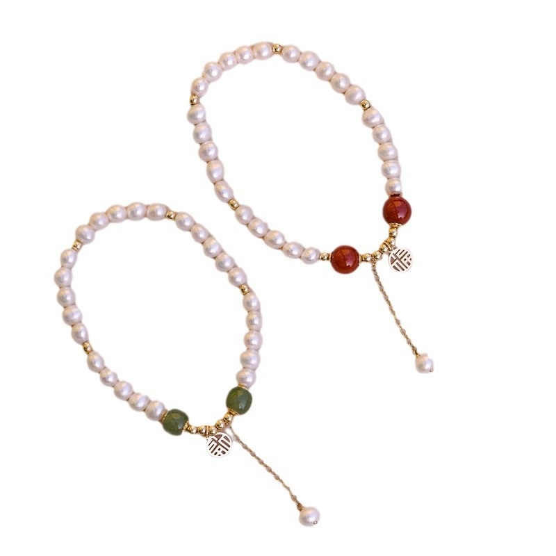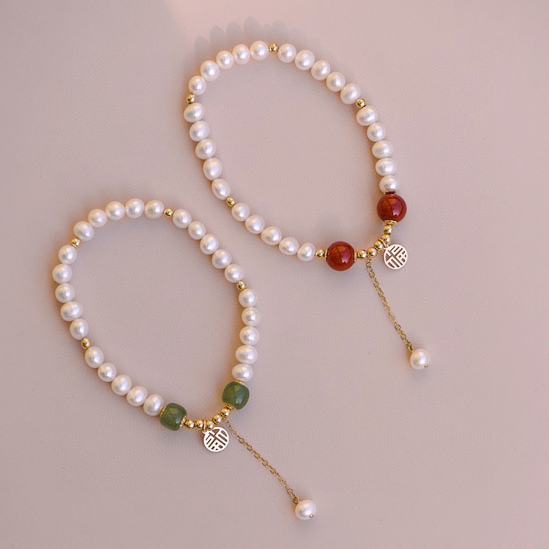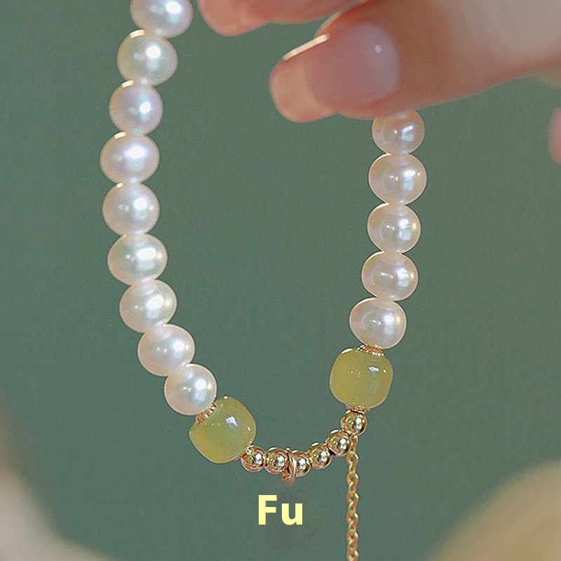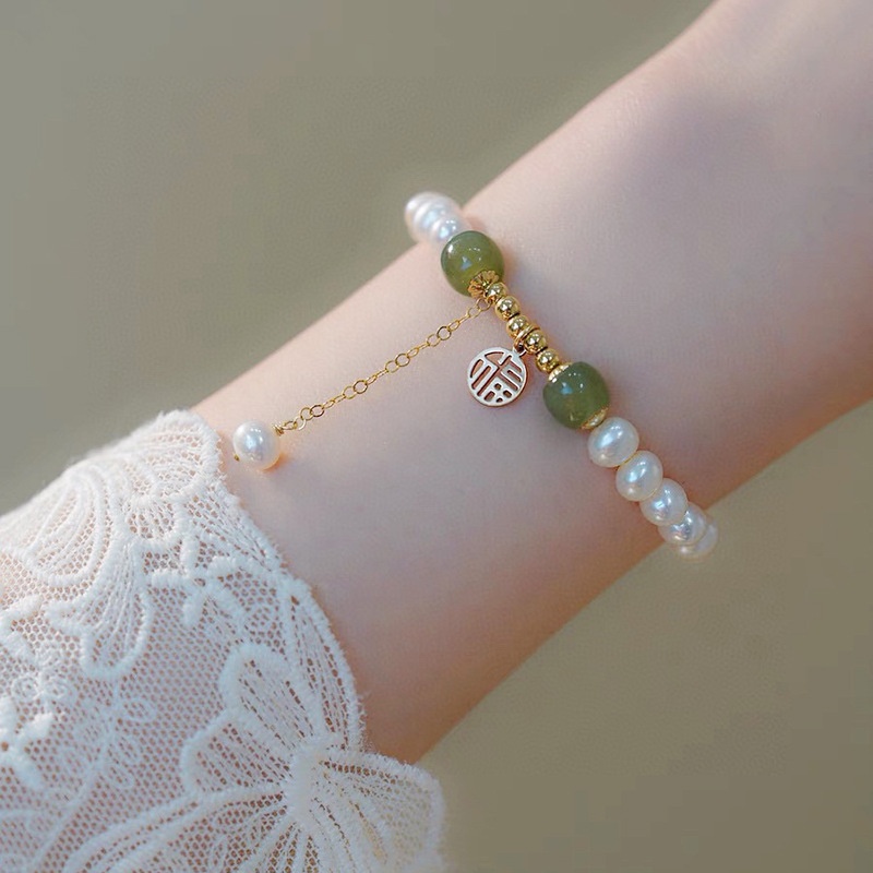 Fu Brand Pendant Natural Freshwater Pearl And Nephrite Jade Bracelet14 KGold-filled Fashion Retro Simple Chinese Style Bracelet