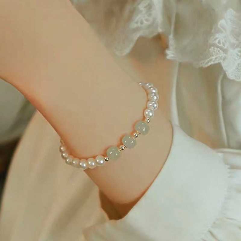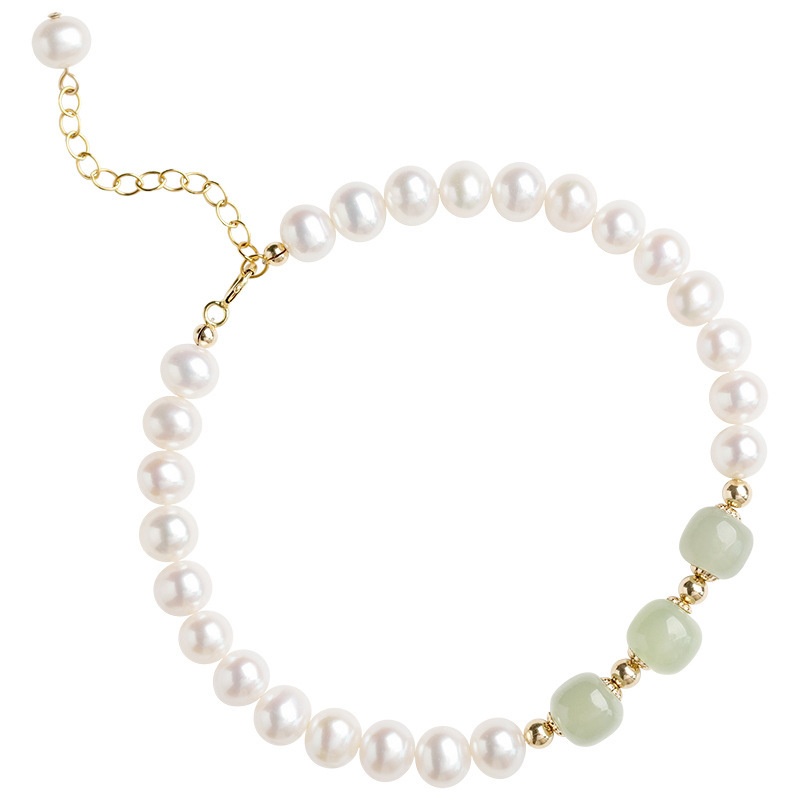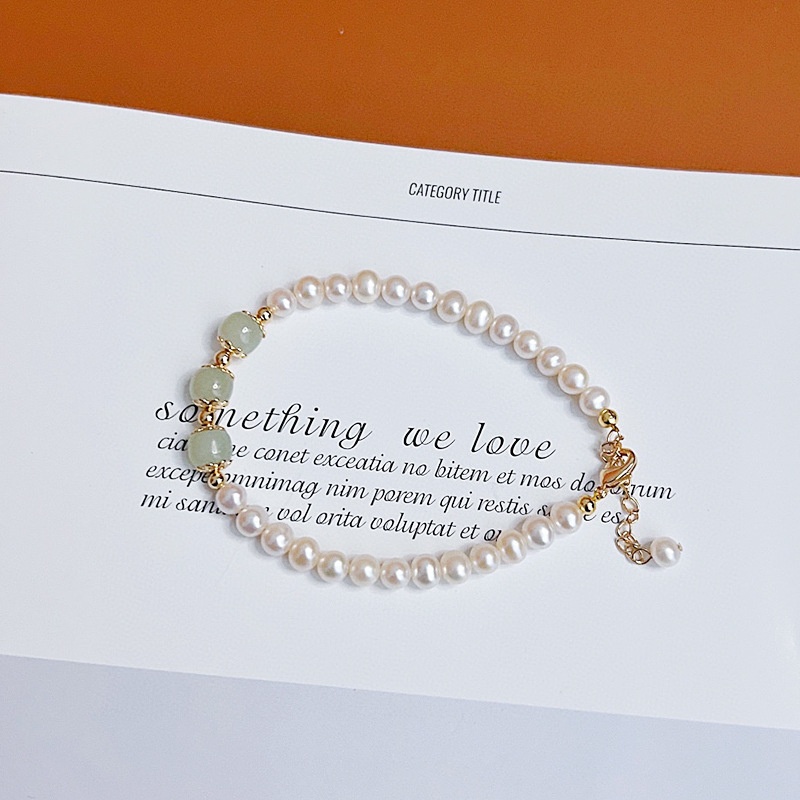 Chinese Natural Freshwater Pearl Bracelet Female14k Gold-filled Hand-woven Fashion Jade Bracelet Ancient Style Summer