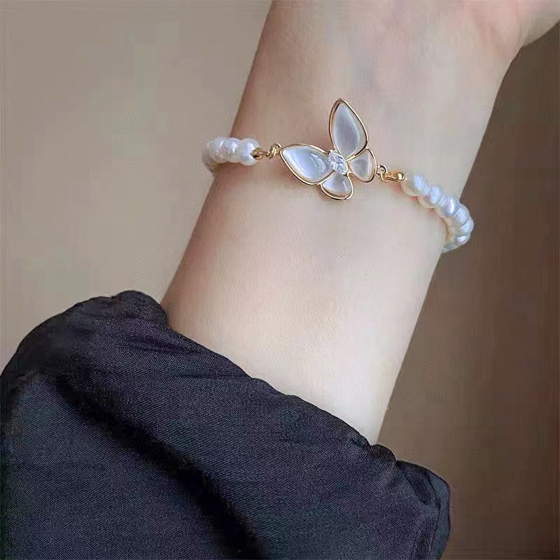 Internet Celebrity Butterfly Bracelet Female Niche Design Fashionable High-end Adjustable Natural Freshwater Pearl Hand Jewelry Xiaohongshu