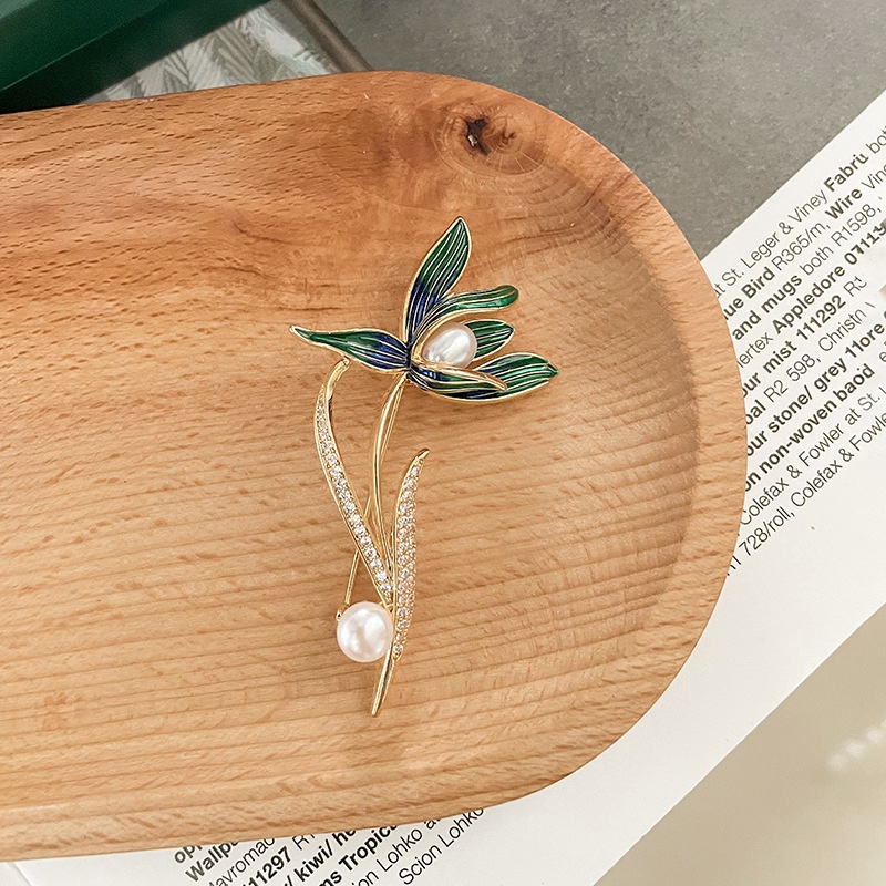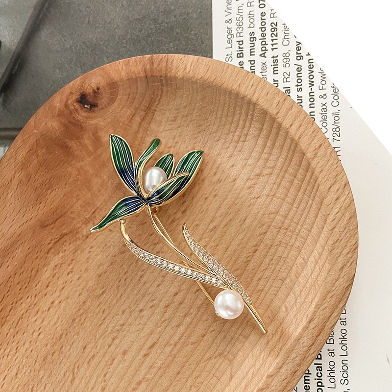 Natural Freshwater Pearl Magnolia Brooch High-end Niche14k Gold-filled Suit Accessories Flower Diamond Pin