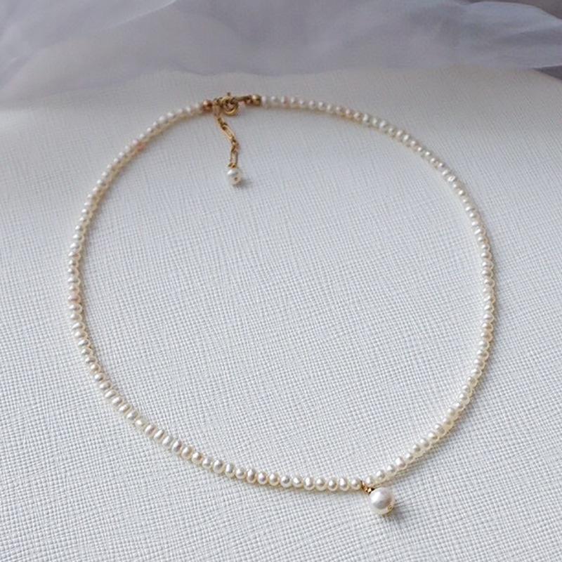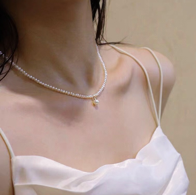 Hepburn Style Natural Freshwater Pearl Necklace Female Niche Design14k Gold-filled All-match High-end Clavicle Chain
