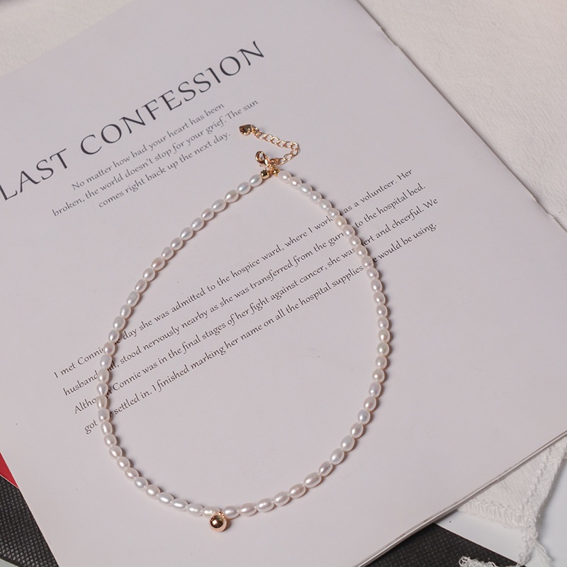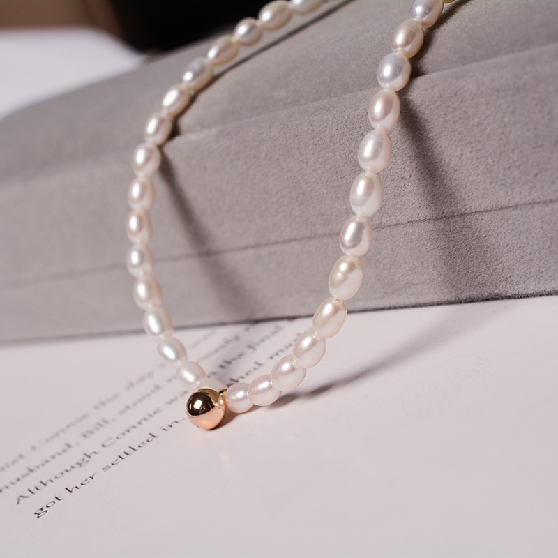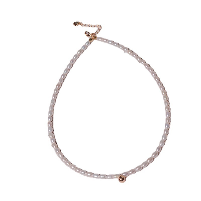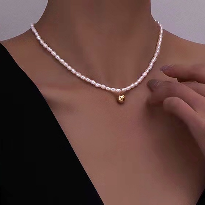 Japanese And Korean Natural Freshwater Pearl Necklace Niche High-end14k Gold-filled Small Gold Ball Necklace Clavicle Chain