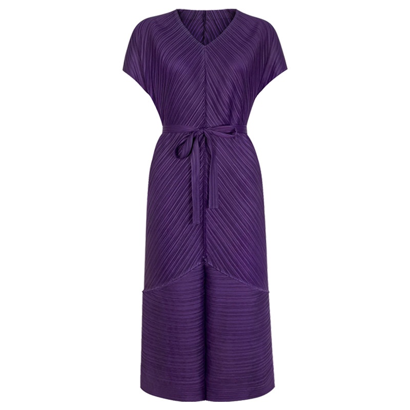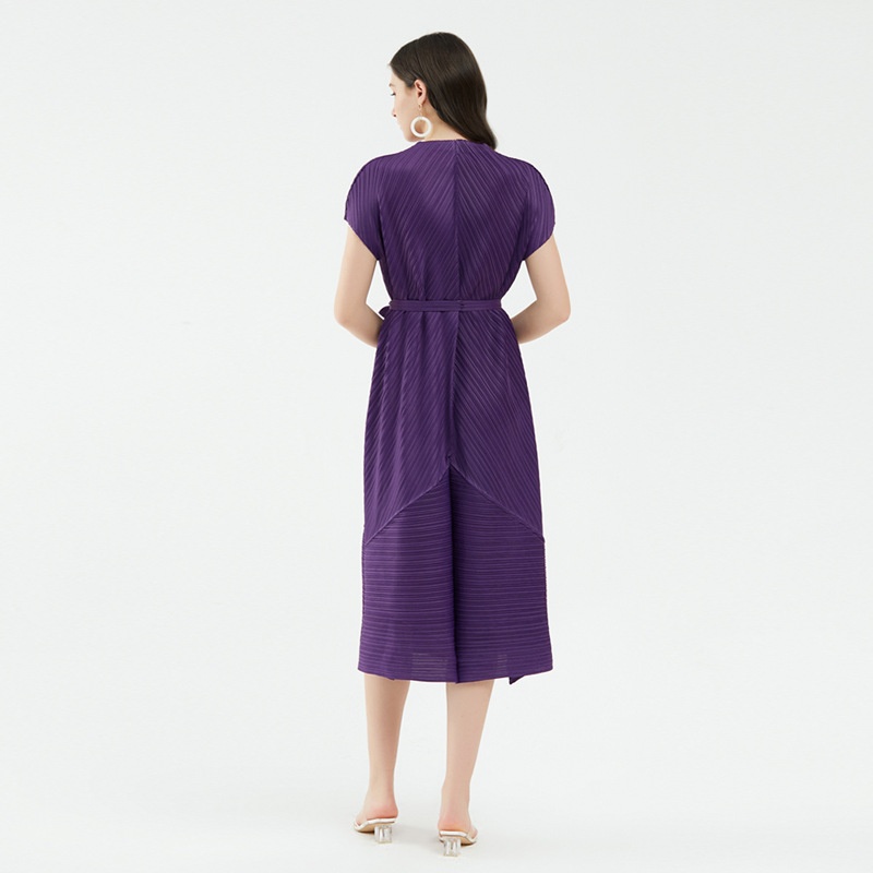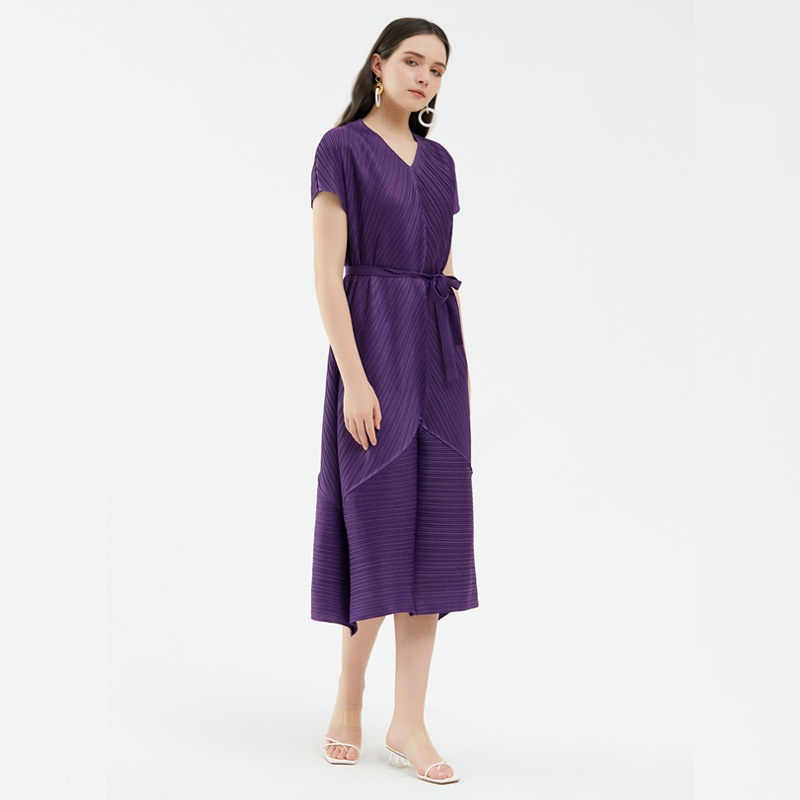 Summer Temperament Women's Clothing Pleated Slim Waist Design Dress Female V-neck High-end Skirt