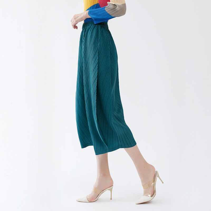 Spring Style Pleated Fashion Style Bloomers Korean Style High Waist Wide Leg Loose Solid Color Casual Mid-length Trousers For Women
