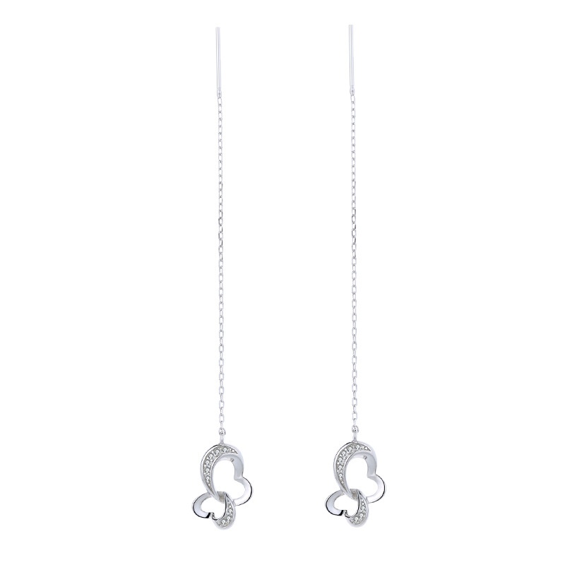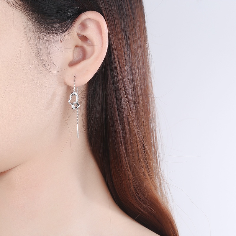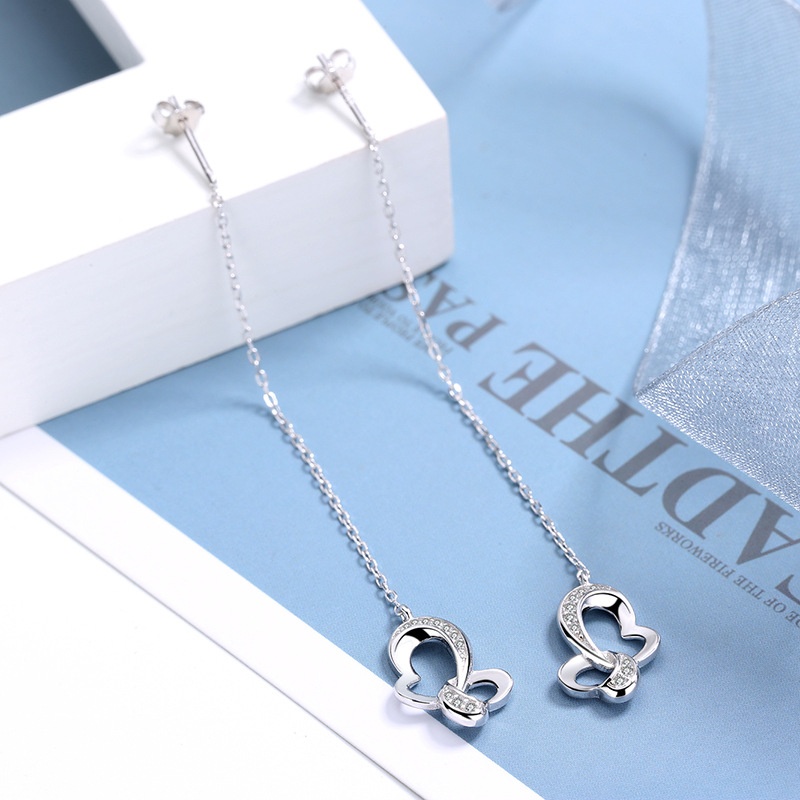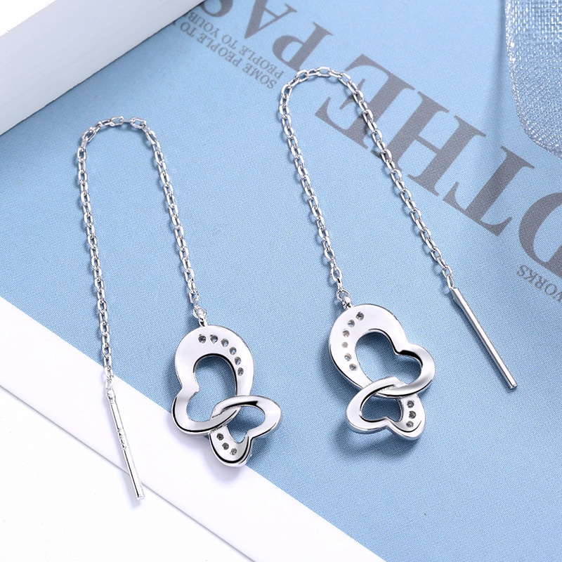 S925 Sterling Silver Heart Long Tassel Earrings Korean Style Fashion Double Heart Earrings Dadongmen Style One Piece Jewelry