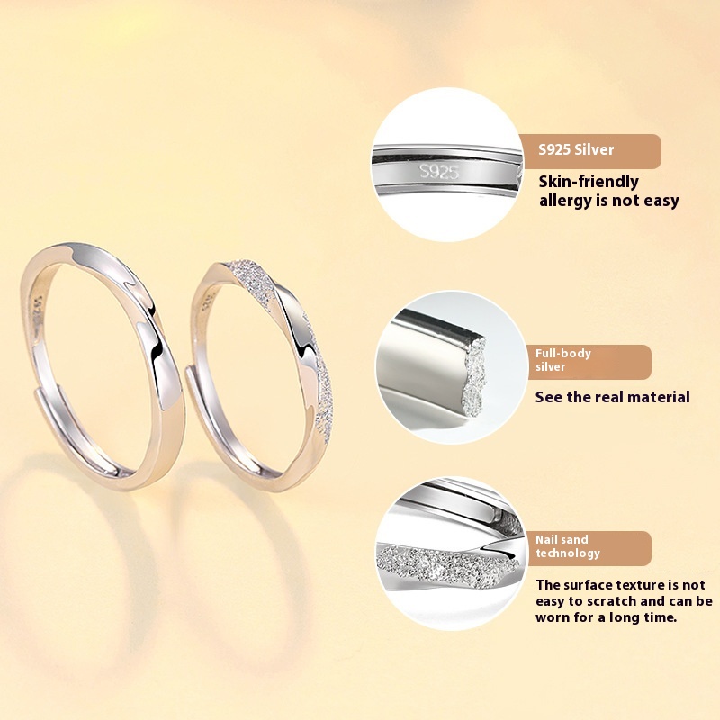 Sterling Silver Couple Rings,Light Luxury Shimmering Sand Design,Matching Rings
