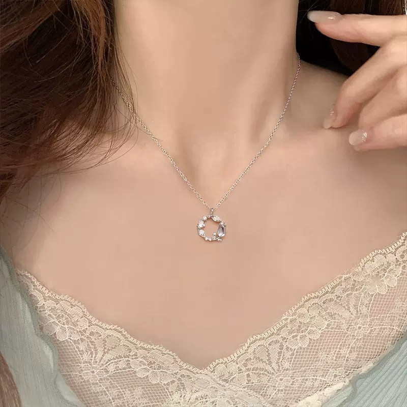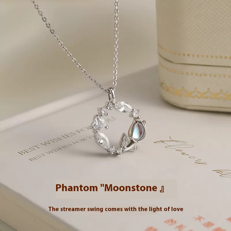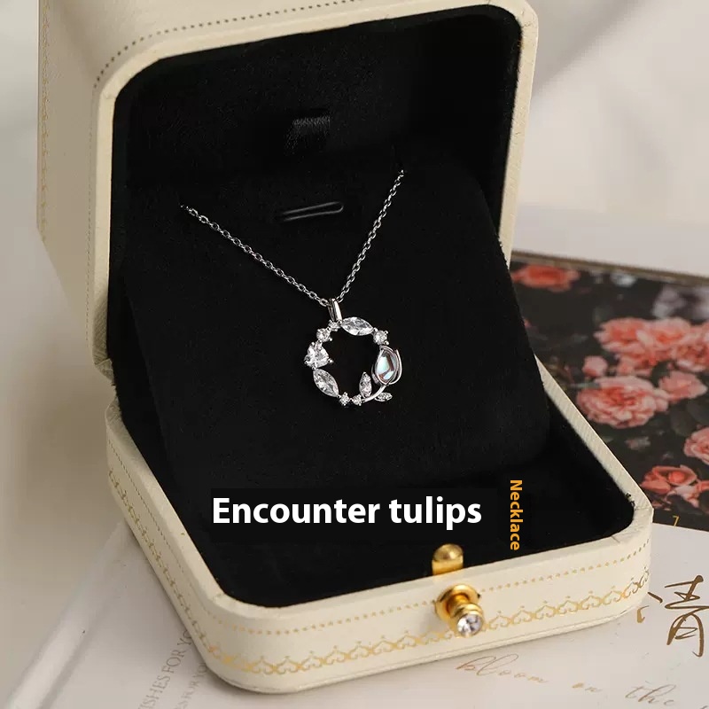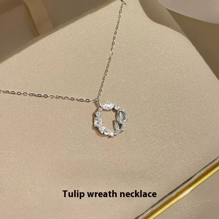 S925 Sterling Silver Tulip Wreath Necklace For Women Light Luxury Niche Temperament Plant Flower Clavicle Chain Silver Jewelry