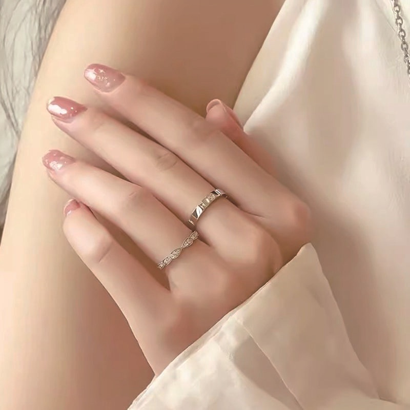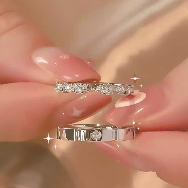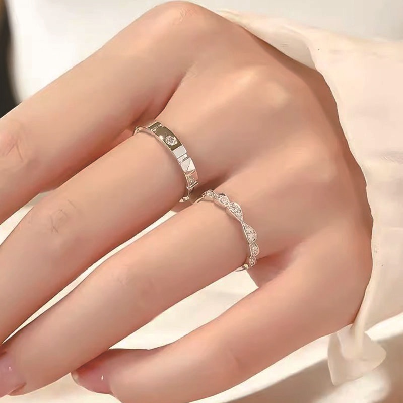 S925 Sterling Silver Sugar Cube Bow Zircon Couple Ring Men And Women Light Luxury Niche APair Of Couples Opening Adjustable