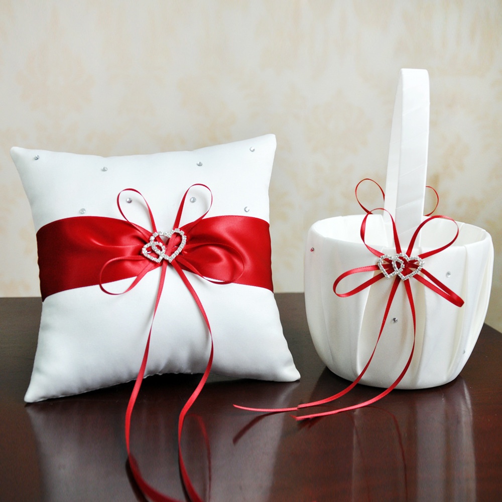 Wedding Supplies Flower Girl Flower Basket Ring Pillow Set Bow Heart Diamond2-piece Set20*20cm