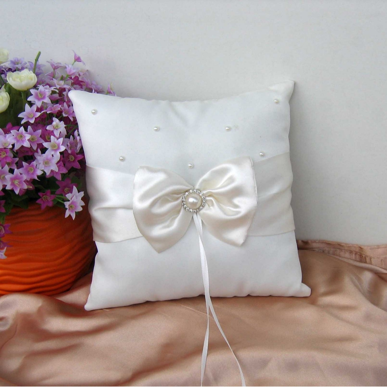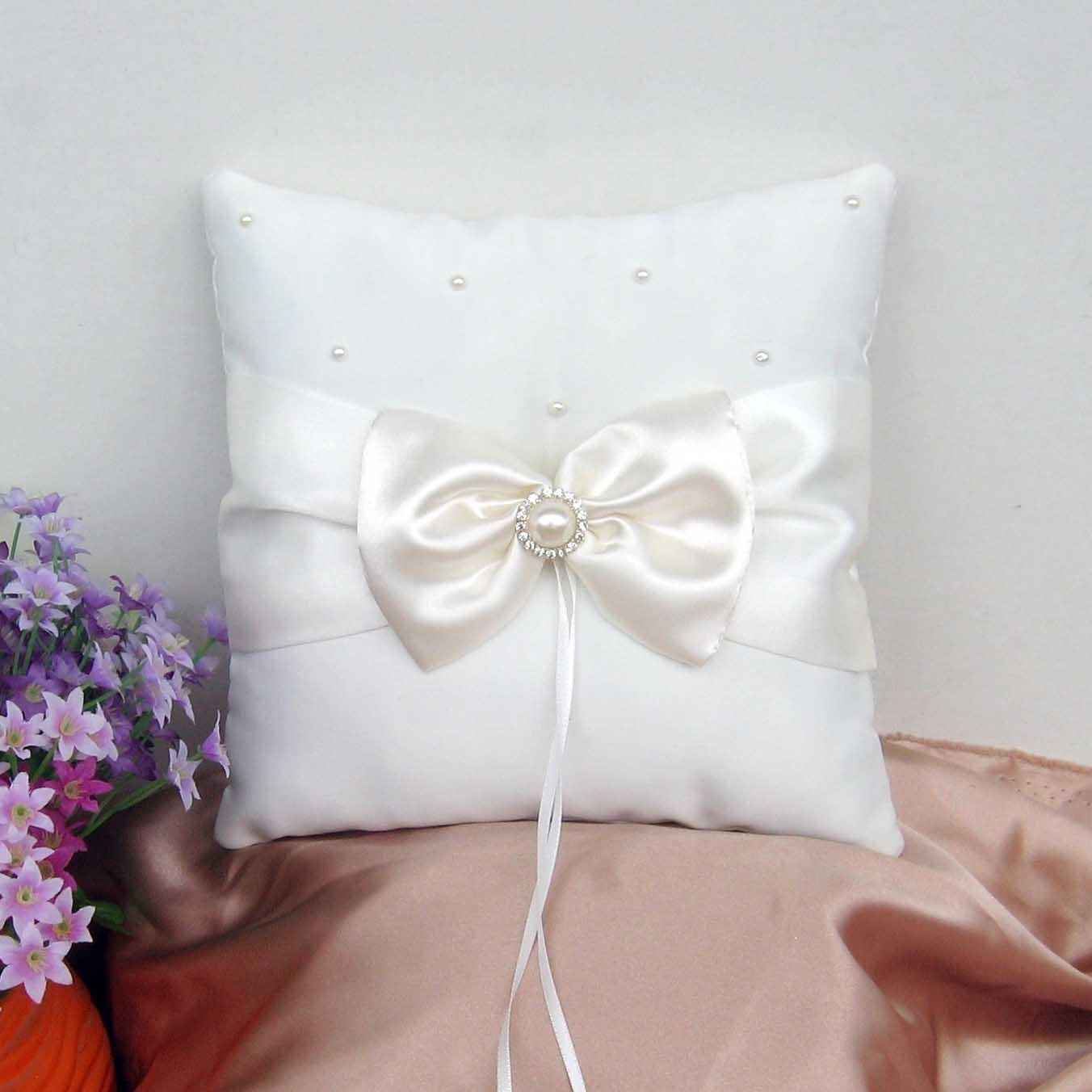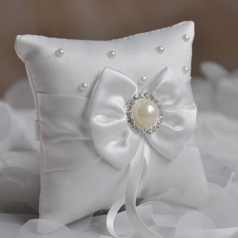 With Design Satin Knot Pearl Rhinestone Ring Pillow Bridal Ring Pillow Wedding Supplies