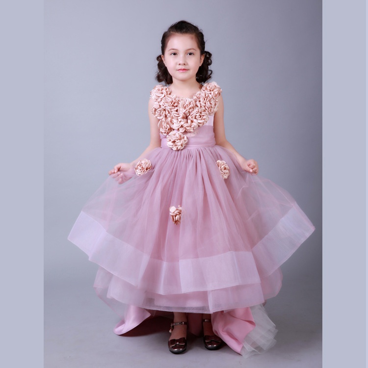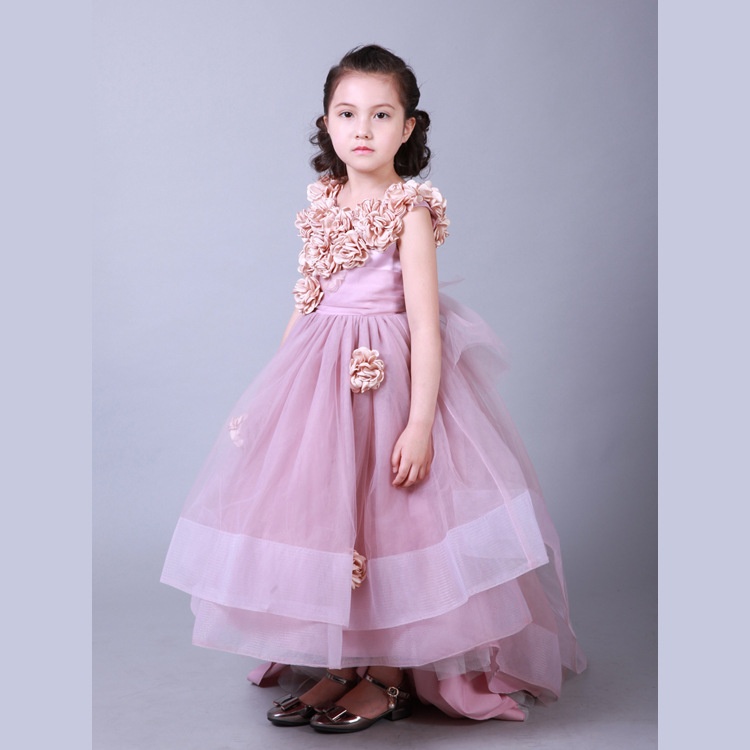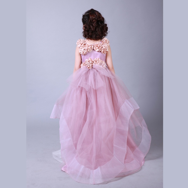Foreign Trade European And American Children's Dress Satin Flower Girl Dress Performance Birthday Catwalk Princess Puffy Long Skirt Can Be Sent On Behalf Of