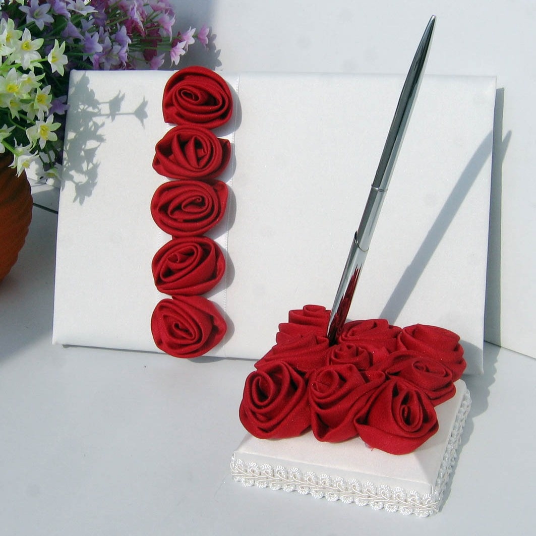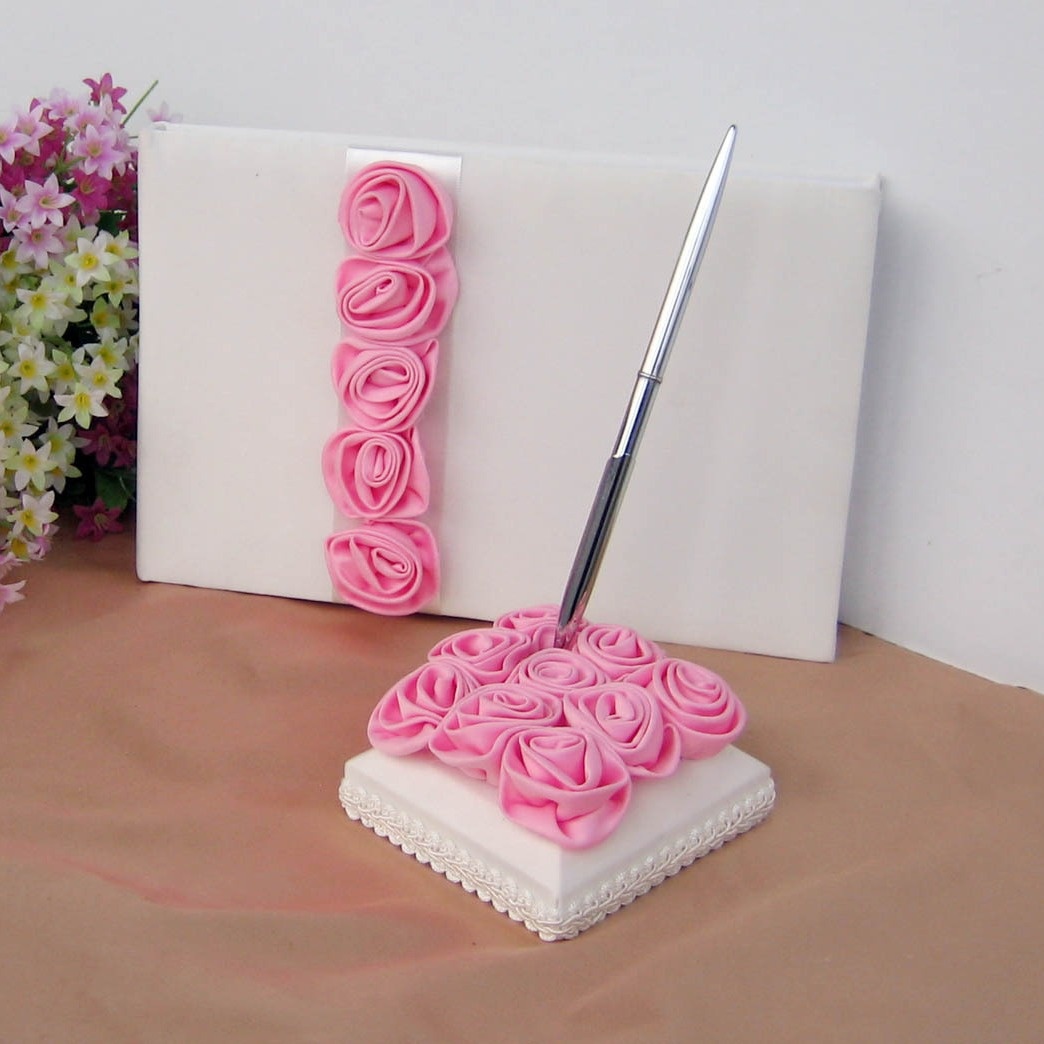 Foreign Trade Wedding Satin Flower Sign-in Set Western Sign-in Book+Pen Holder Wedding Supplies