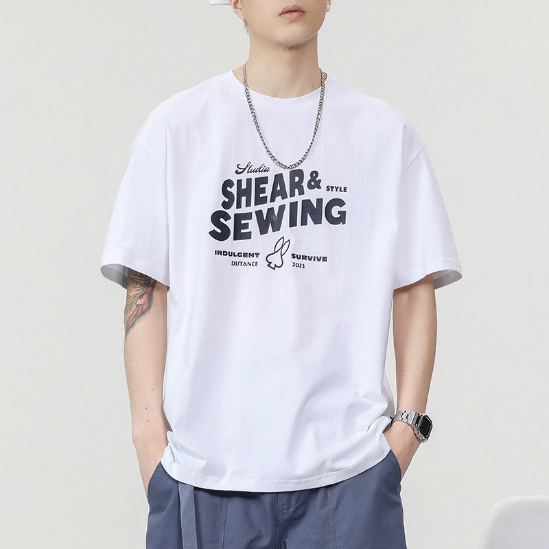 280g Heavyweight Pure Cotton Short-sleeved T-shirt Men's American Retro Summery Letter Casual THalf-sleeved Top