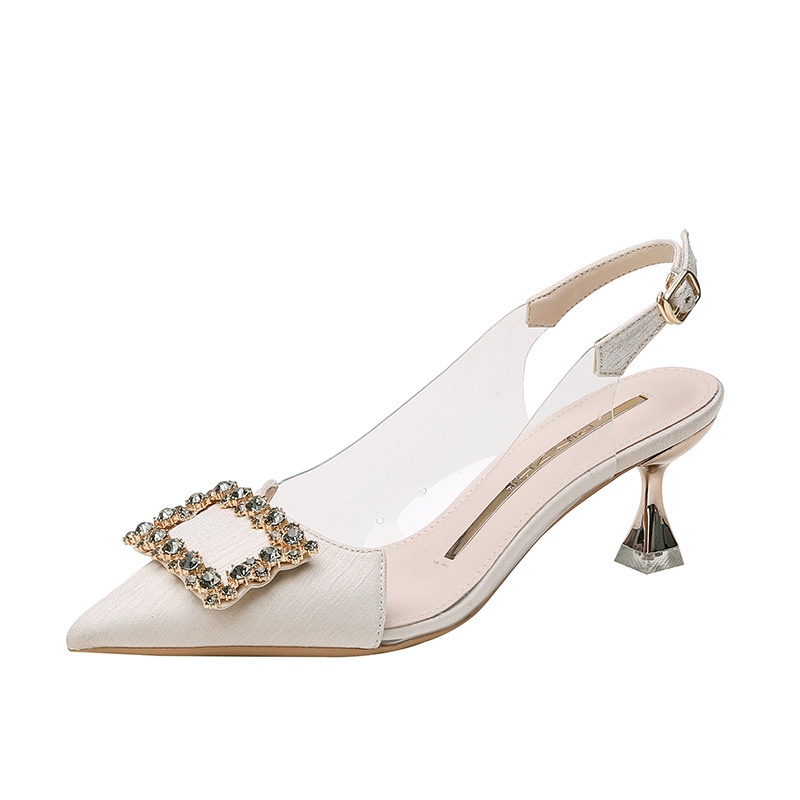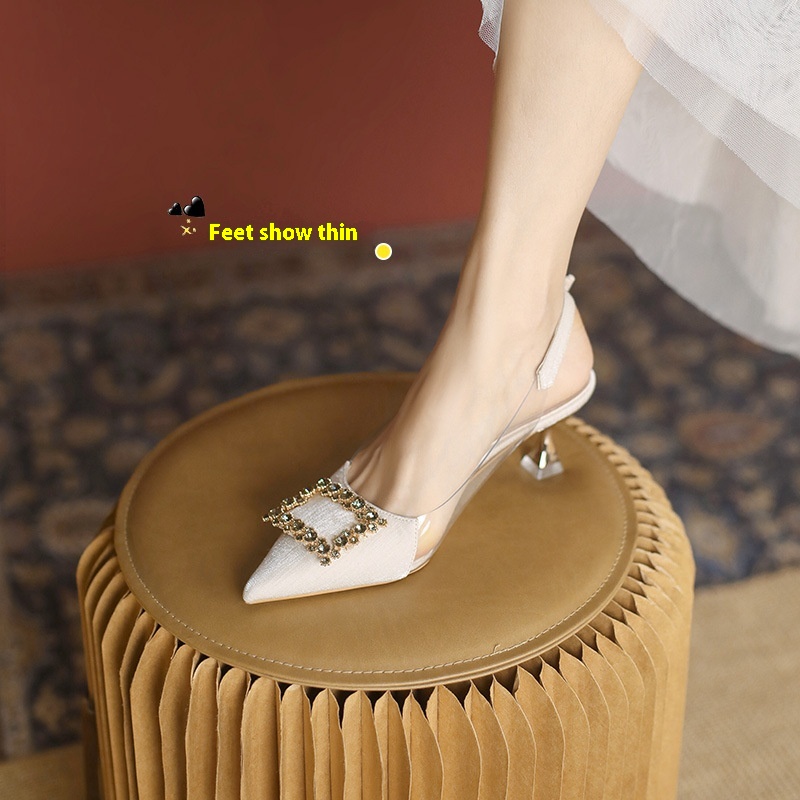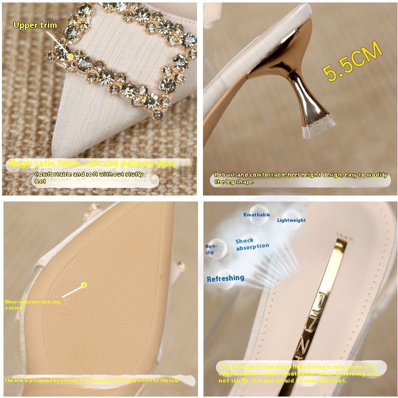 8088-12 Spring Extra Blue Rhinestone Pointed Stiletto Heel Boto Half-Slip Shoes Women Sandals34-39
