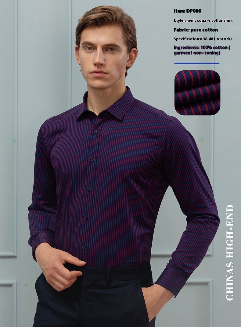 Carefully Selected Men's Free Ironing Cotton Long-sleeved Shirt Lutai Fabric Double-stranded Cotton High-end DPReady-made Clothing Free Ironing