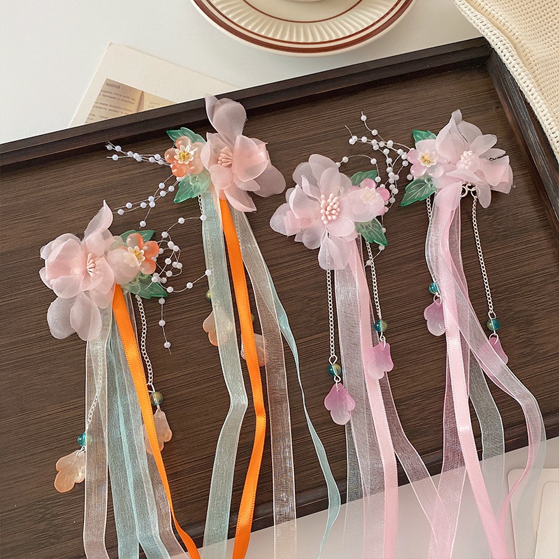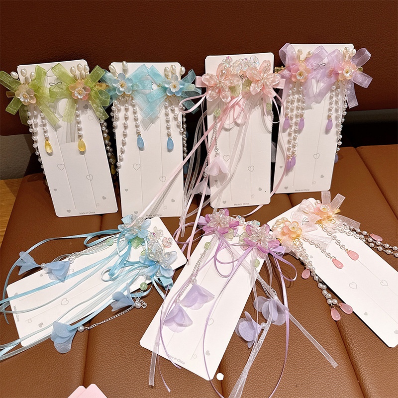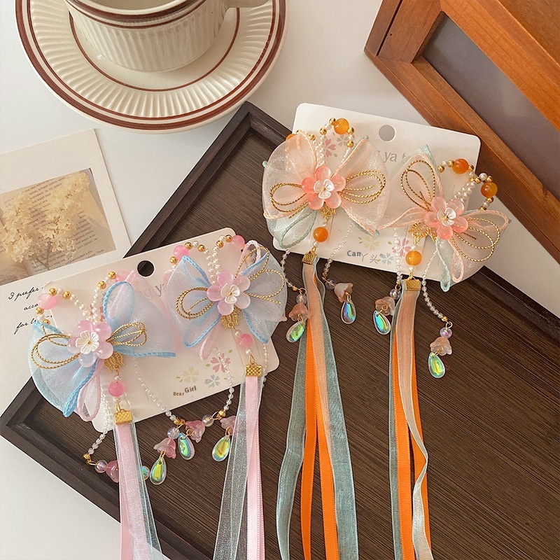 Style Children's Hanfu Headdress Little Girl Bow Tassel Hairpin Princess Super Fairy Ancient Style Flower Hairpin Hair Accessories