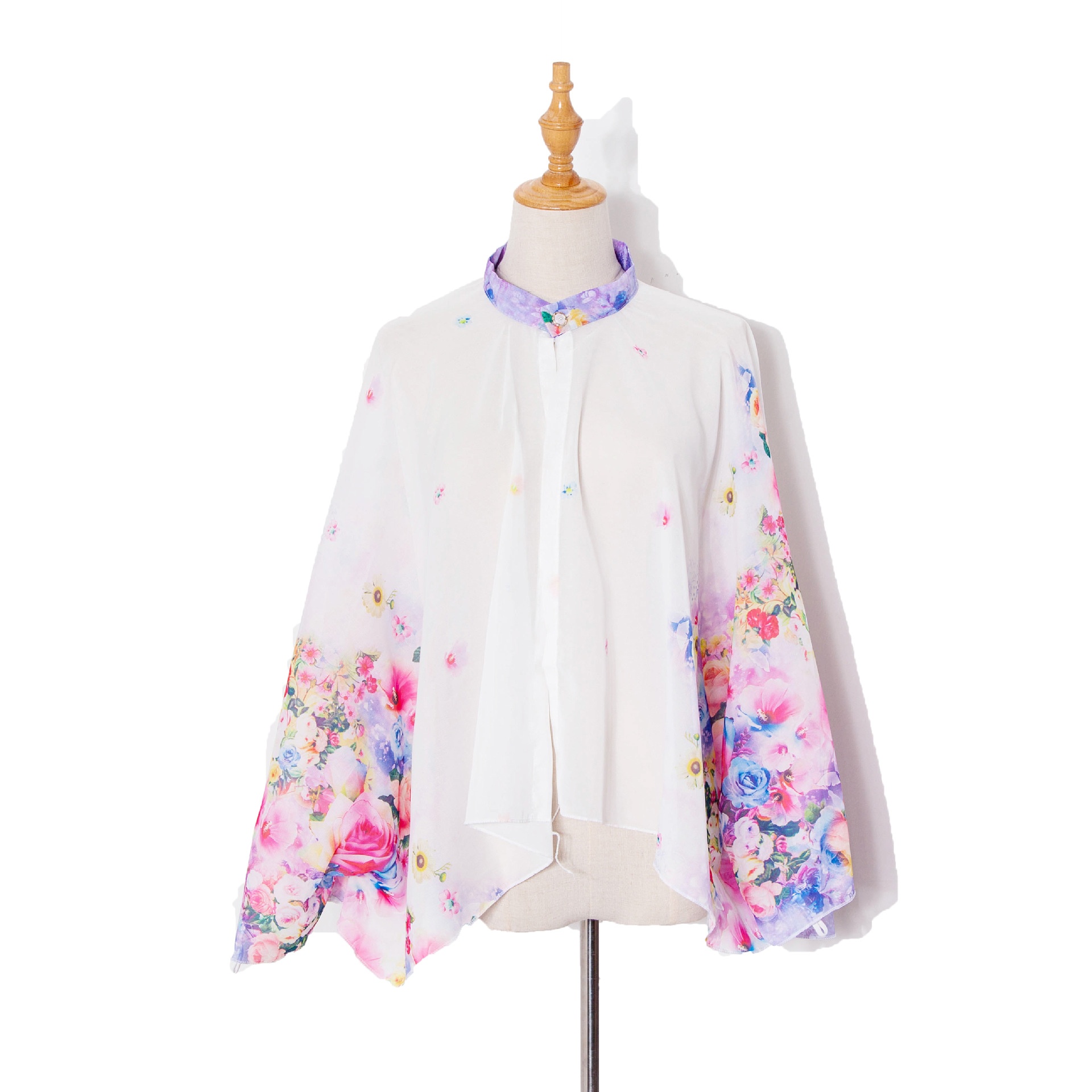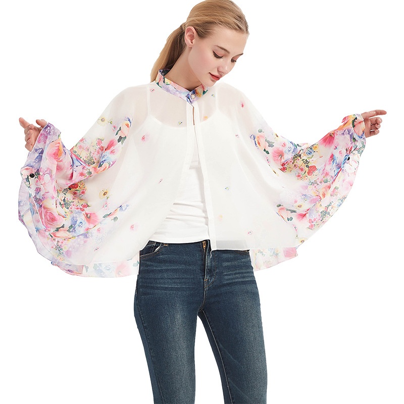 Summer Driving And Cycling Button Sun Protection Clothing Women's Cardigan Printed Sun Protection Thin Shawl Sunshade Cape