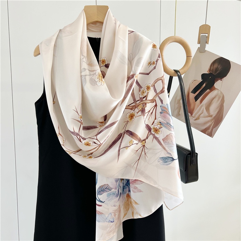 Hangzhou Silk Silk Satin Sunscreen Shawl Scarf Women Spring And Autumn Long Versatile Mulberry Silk Scarf