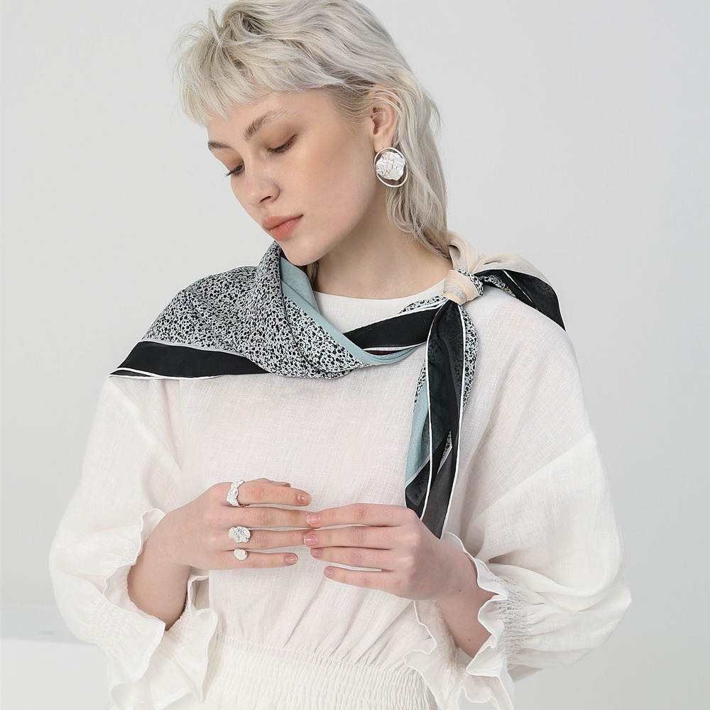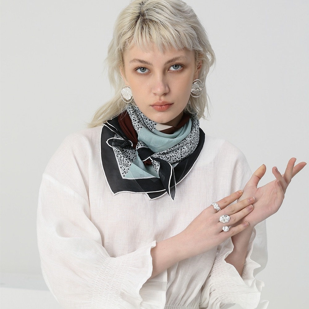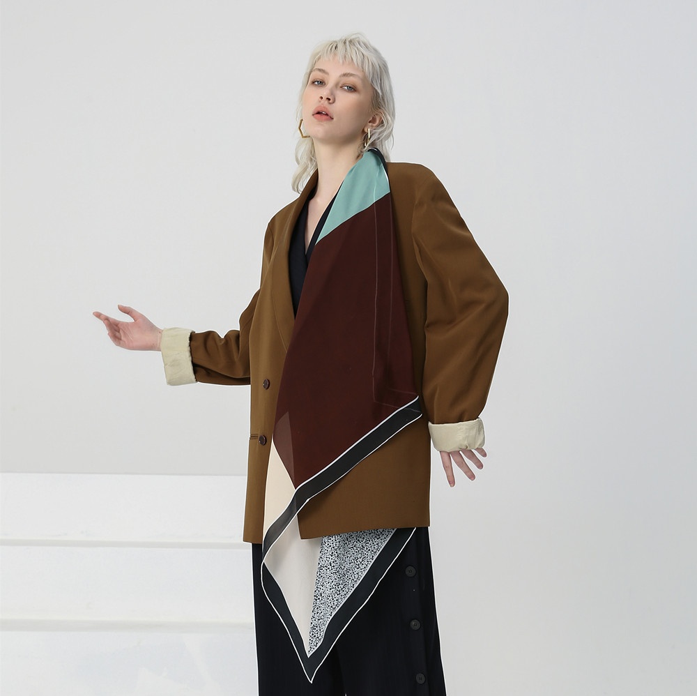 European And American Temperament Silk Chiffon Scarf Ladies Fashion Contrast Color Mulberry Silk Scarf Large Square Scarf Sunscreen Scarf