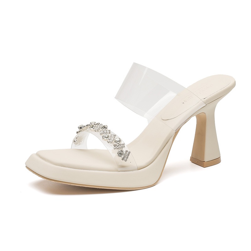 973-K47 Open-toe High Heels Single Shoes French Style Thick Heels Niche Back Empty Sandals Transparent Outdoor Beautiful High Heels