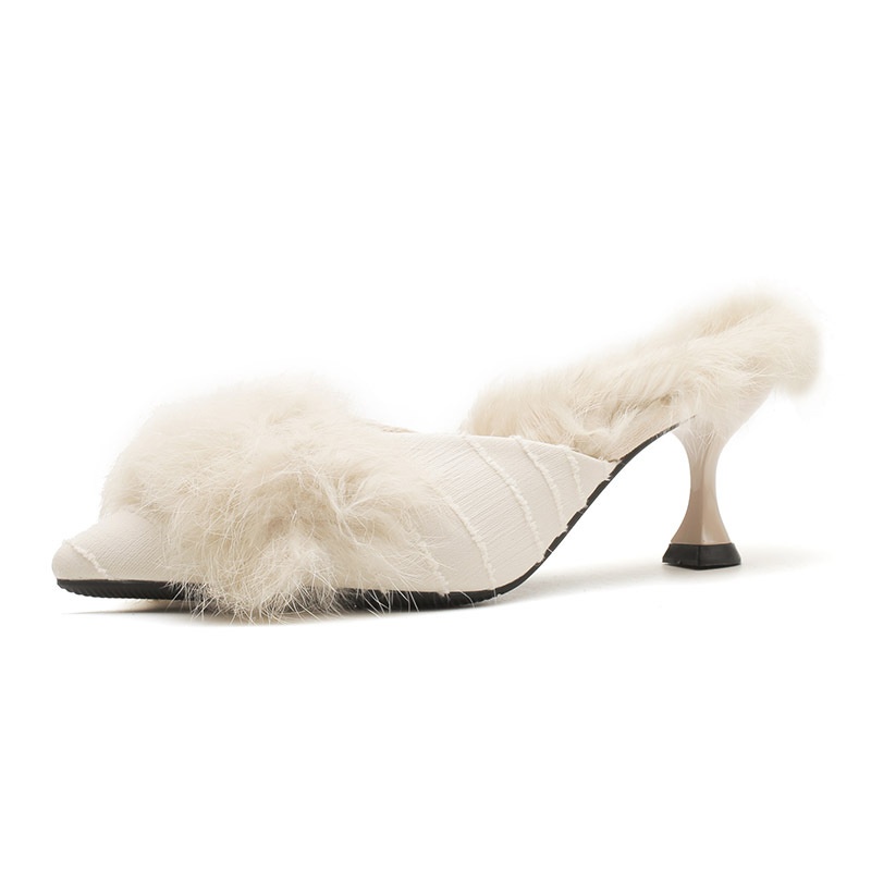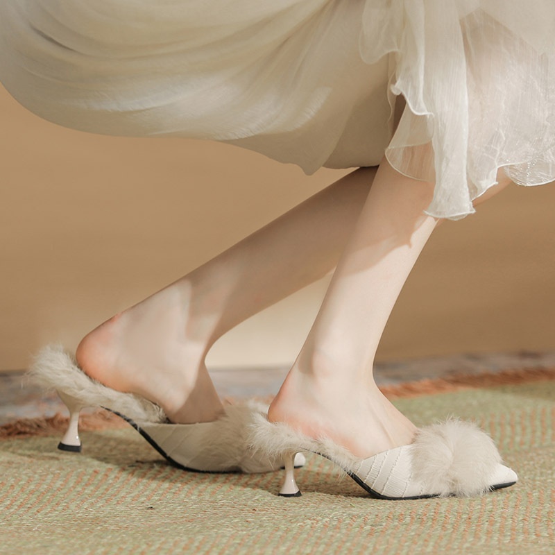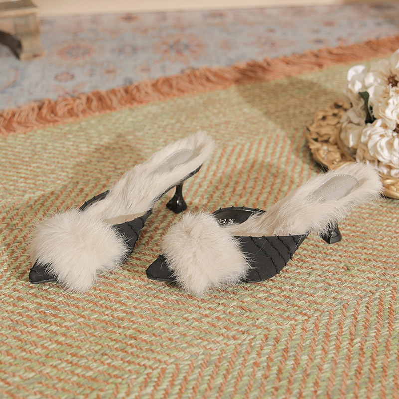 313-2 F11 Autumn And Winter Style Pointed Toe French Fur Shoes Plus Velvet Breathable And Comfortable Outdoor Fur High Heels Women's Shoes