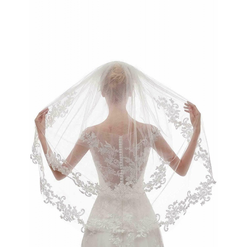 European And American Foreign Trade Wedding Bridal Veil White Ivory Embroidery Applique Double Layer With Comb Veil Fingertip Length