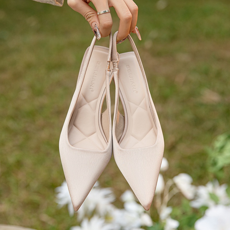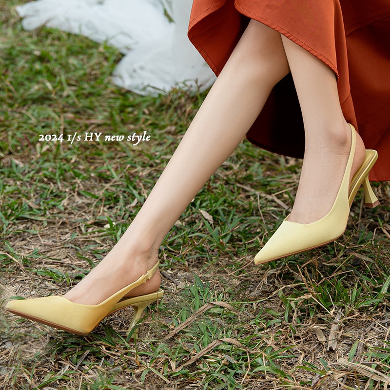 3299-8 Temperament High Heels Women's Stiletto Pointed Sandals With Closed Toe And Back Straps Solid Color Spring And Summer