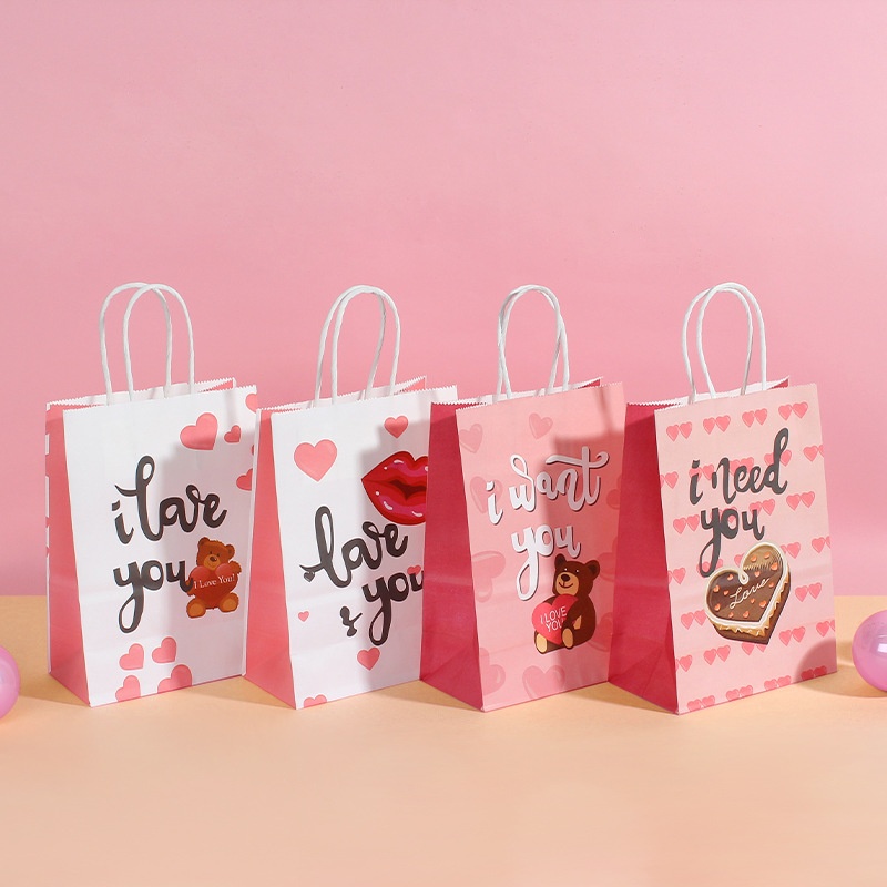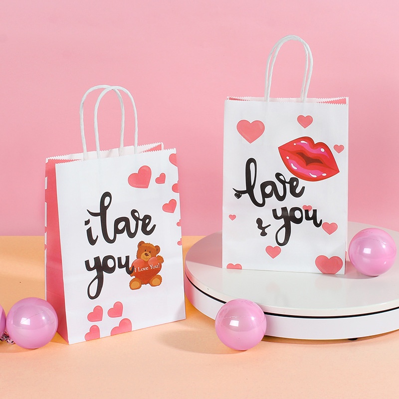 Hong Kong Love Cute Bear Printed Kraft Paper Bag Simple Cartoon Gift Handbag Holiday Valentine's Day Gift Bag
