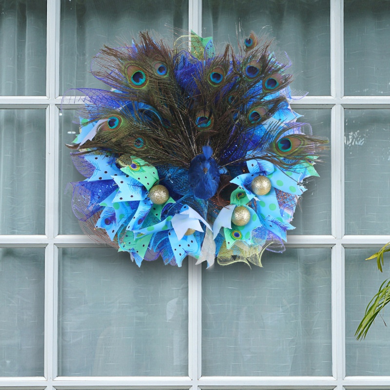 Peacock Wreath Blue Rattan Ring Door Hanging Wedding Decorations Outdoor Scene Layout
