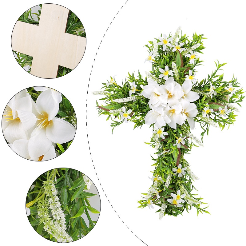 Hong Kong Love Cross Simulation Lily Wreath Door Hanging Decoration Easter Wreath