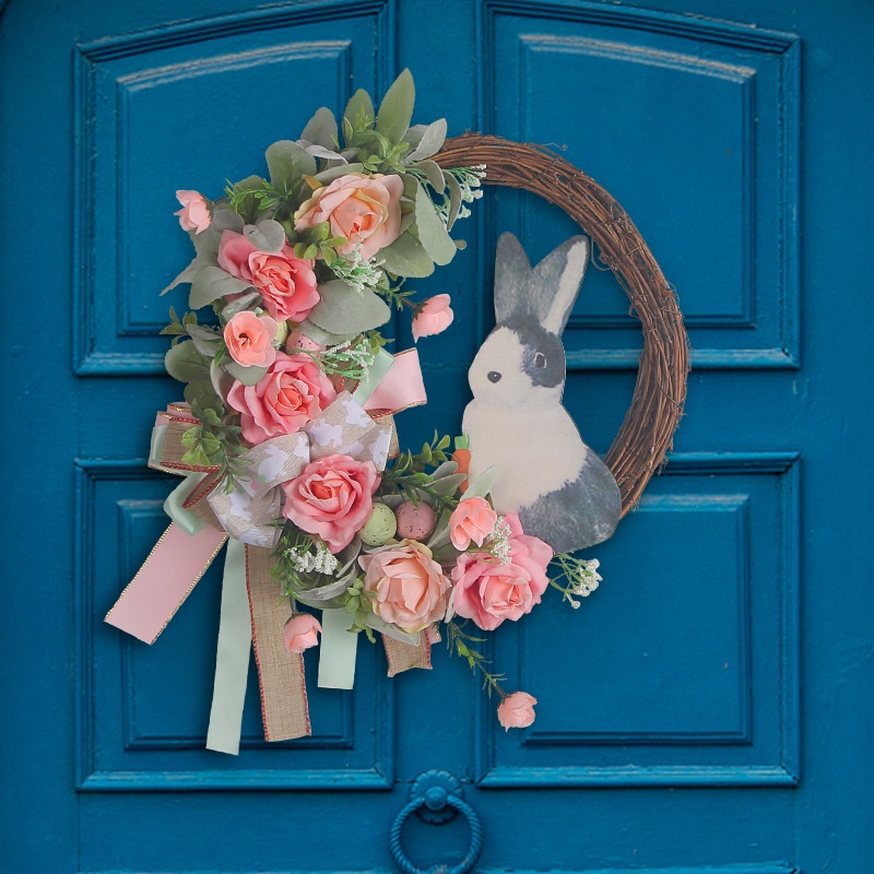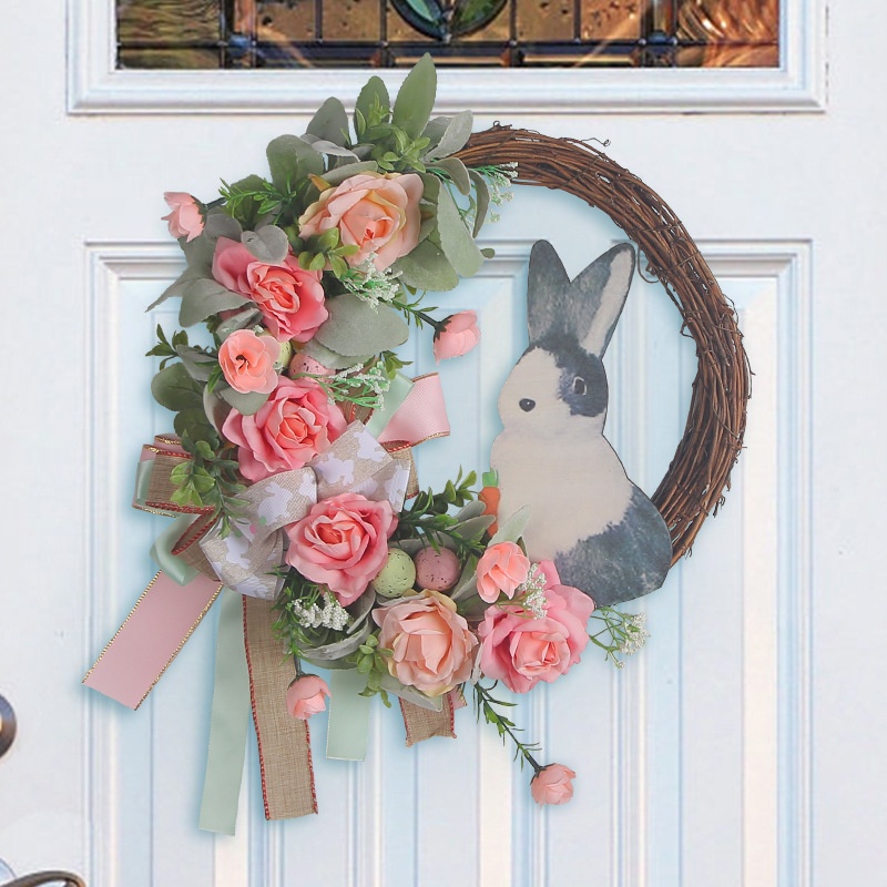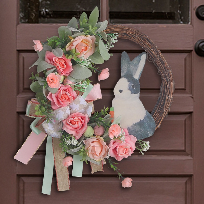 Hong Kong Love Easter Decoration Bunny Wreath Ribbon Wreath Door Hanging Family Simulation Plant Party Pendant