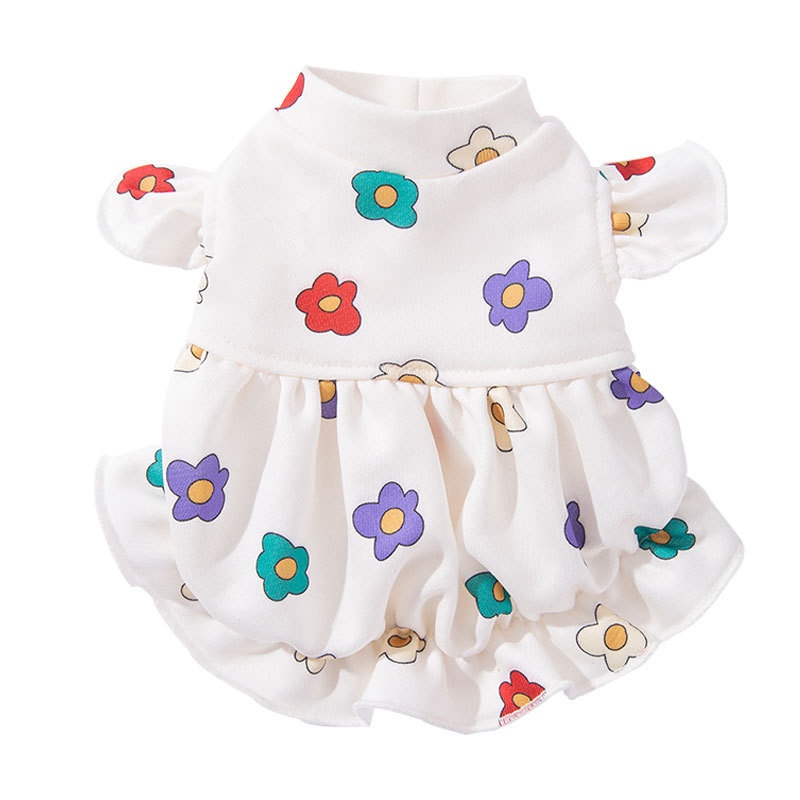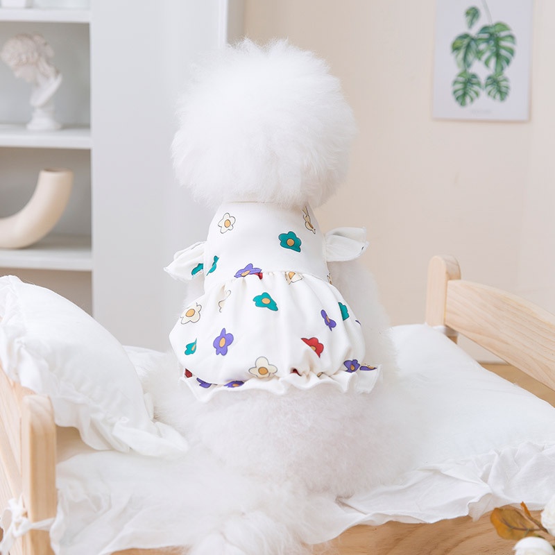 24 Spring And Summer Cute Little Flower Dog Dress Cat Small Flying Sleeve Skirt Bichon Teddy Pet Clothes