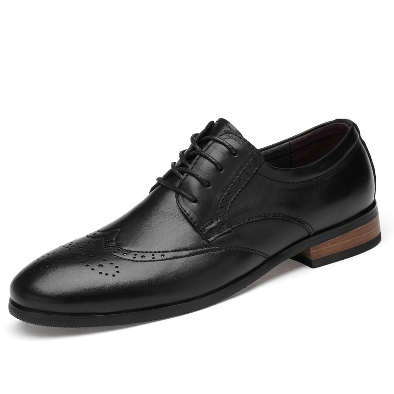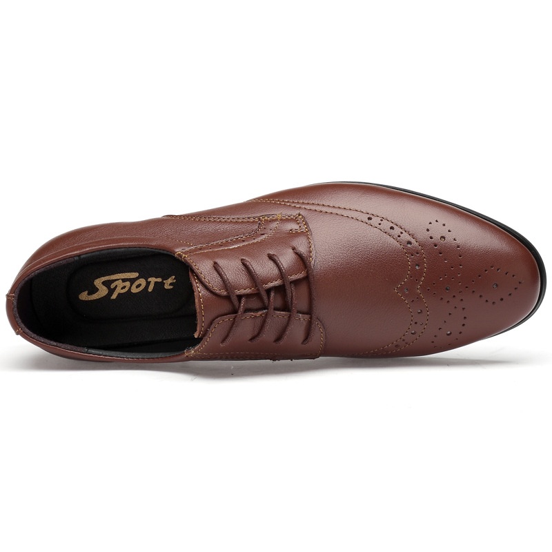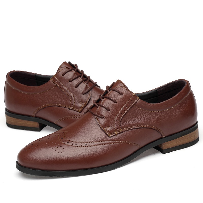 Spring Men's Leather Shoes Genuine Leather Lace-up Business Formal Men's Shoes Pointed Toe Casual Shoes One Piece Drop Shipping