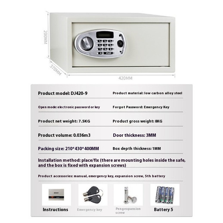 Rectangular Safe, Small Safe, Password Box, All-steel Anti-theft Bedside Table, Wall-mounted Wardrobe Storage Box