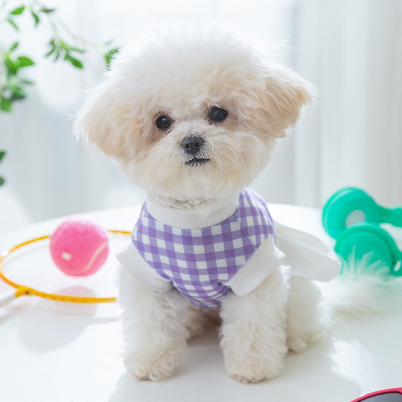Love Checkerboard Dress Dog Skirt Spring And Summer Small Dog Clothes Teddy Pomeranian Pet Clothing