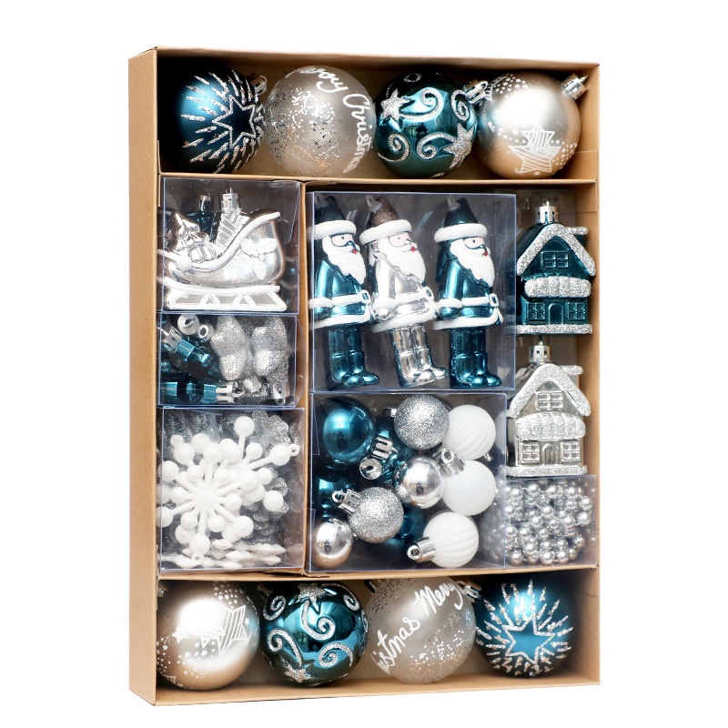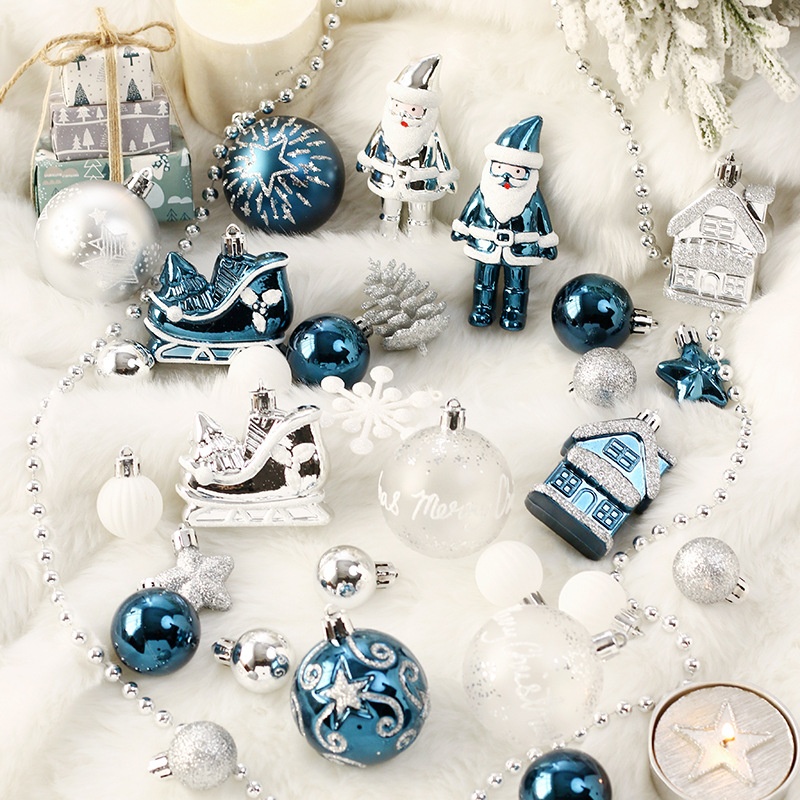 Christmas Decorations50pcs Blue,White And Silver Painted Christmas Ball Set Hanging Christmas Tree Decoration Pendants