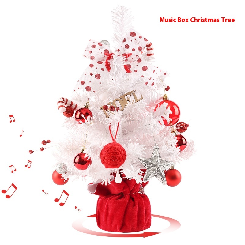 Christmas Decorations Red And White Rotating Music Box Desktop Mini Christmas Tree Set Ornaments