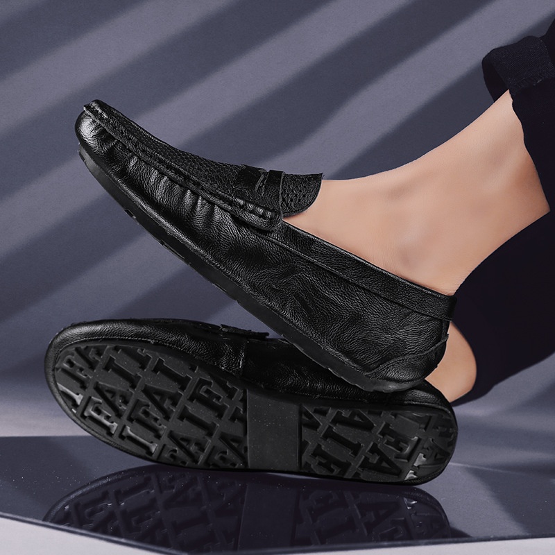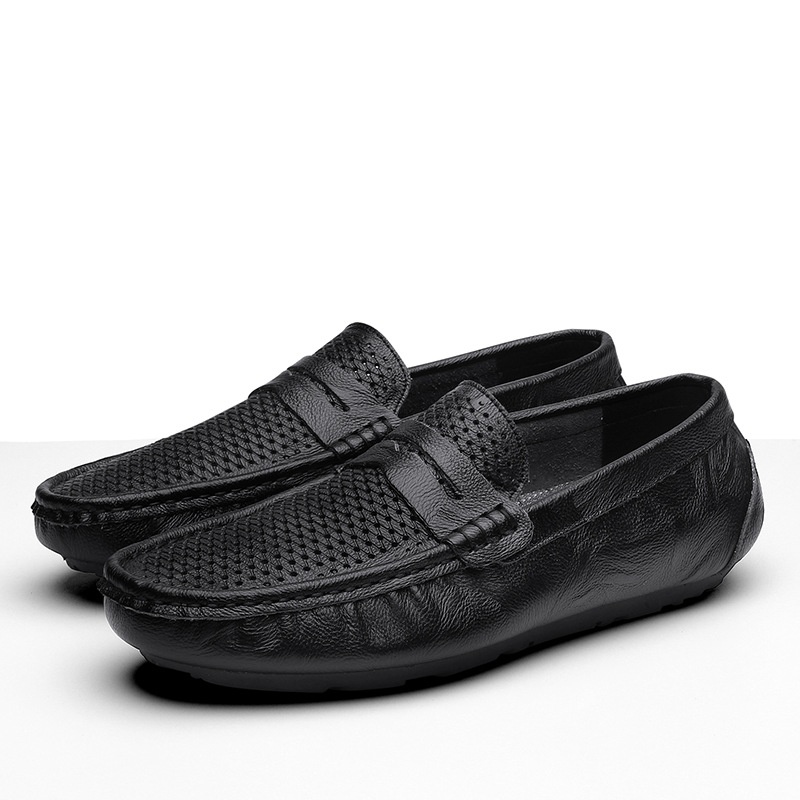 Summer Men's Hollow Breathable Genuine Leather Slip-on Shoes Versatile Low-top Casual Leather Shoes