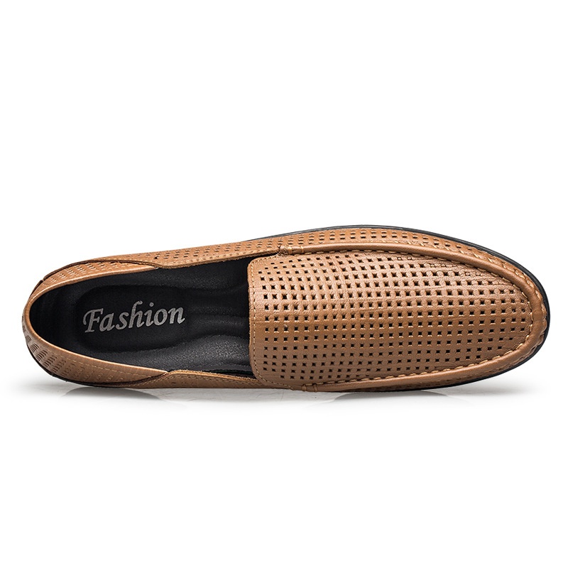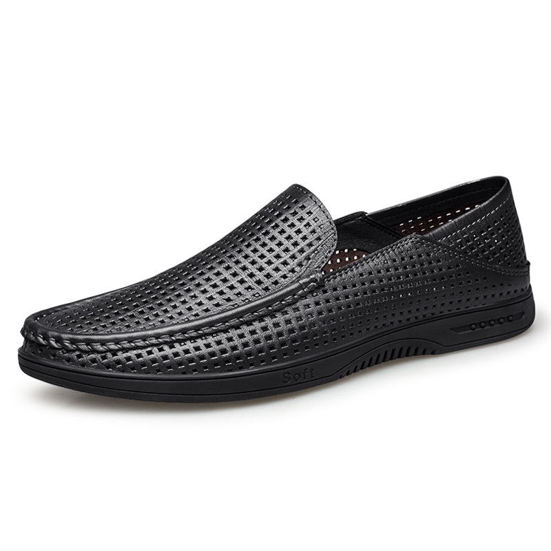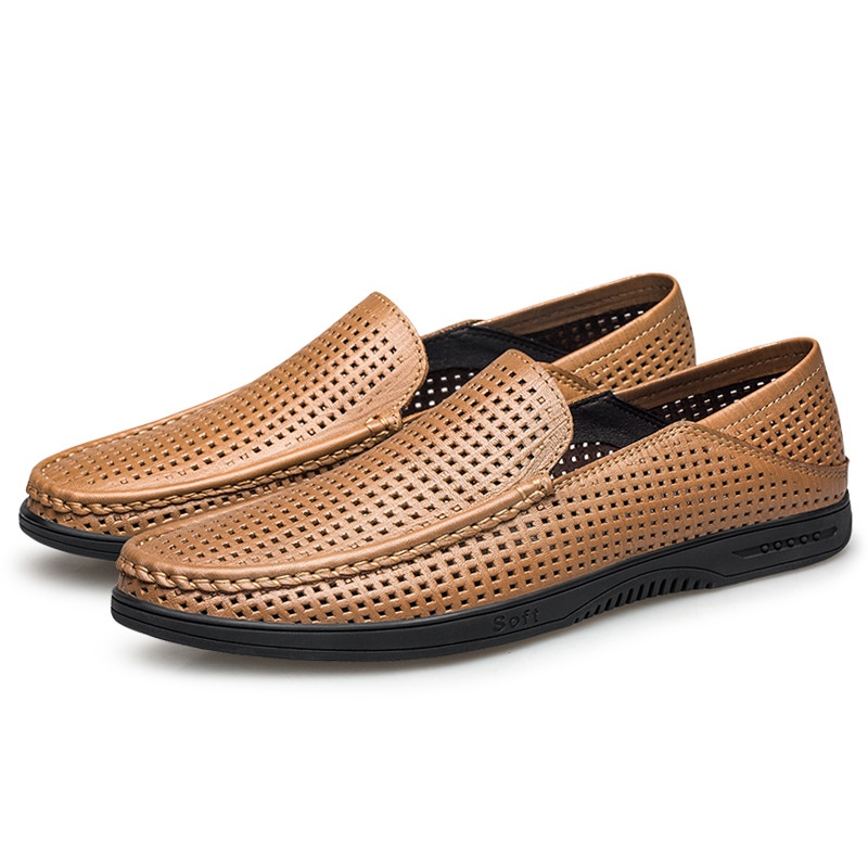 Summer Men's Hollow Breathable Leather Shoes Low-top Slip-on Casual Leather Shoes Driving Leather Shoes